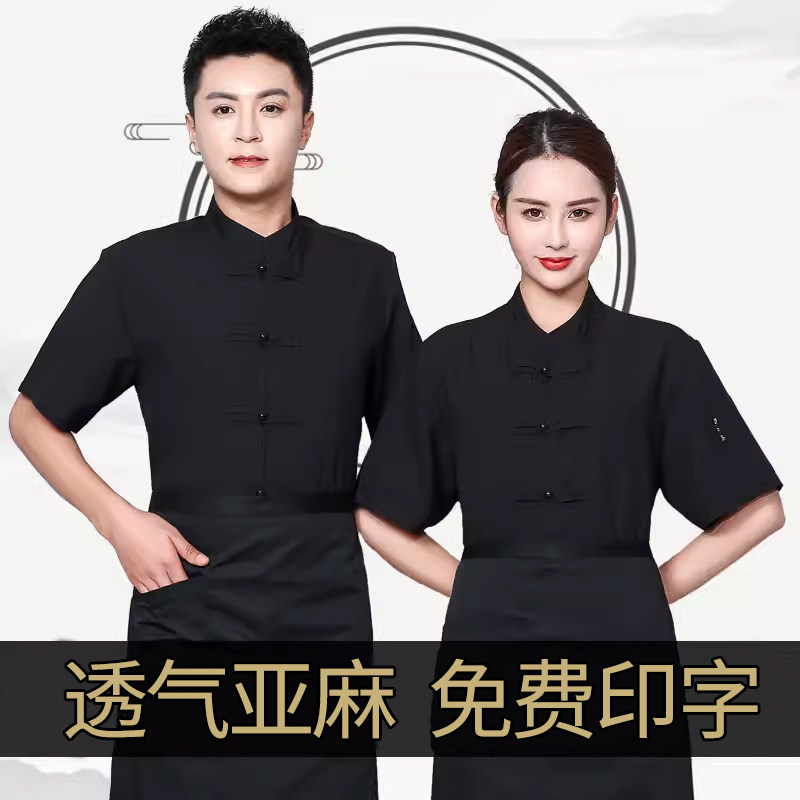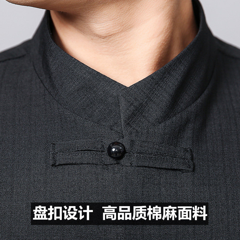 Дышащий тонкий лонгслив для работы, китайский стиль, короткий рукав, из хлопка и льна