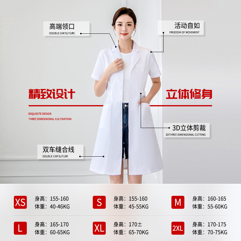Белый халат, униформа врача, демисезонный тонкий химический лонгслив для работы, короткий рукав