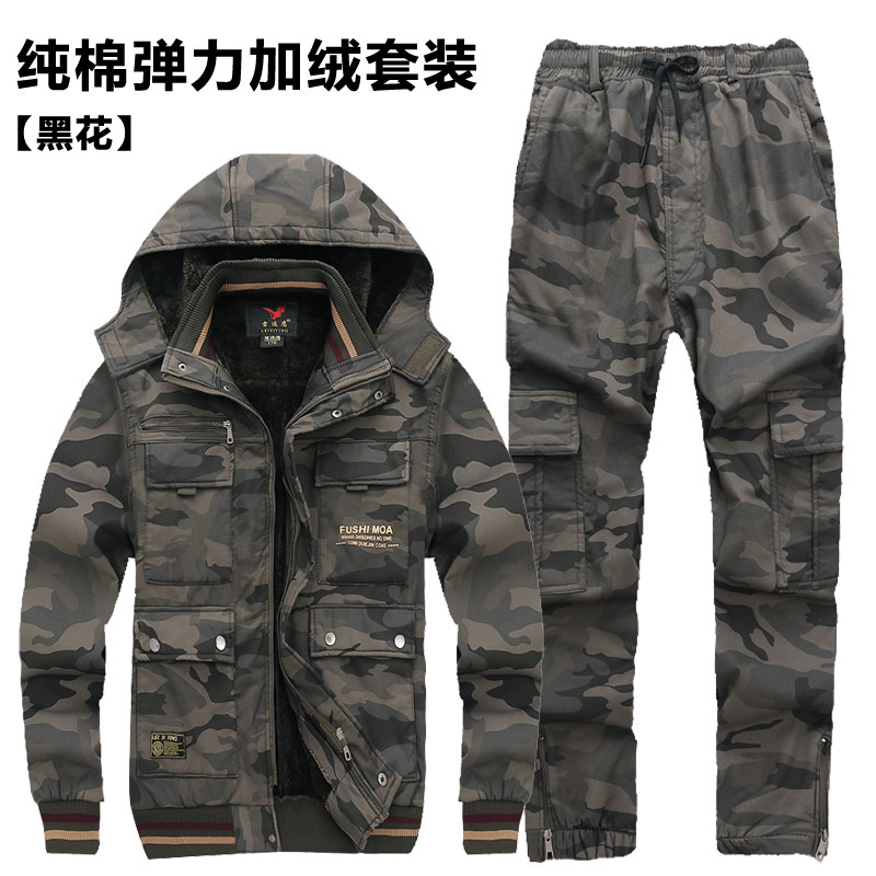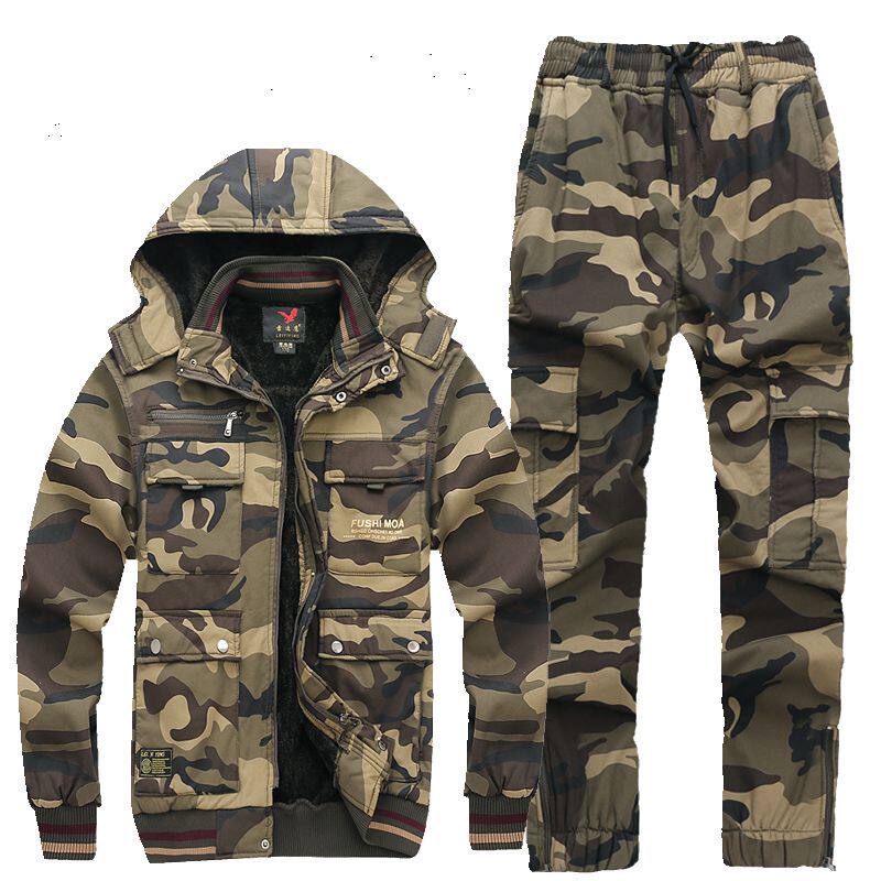 Утепленный износостойкий эластичный камуфляжный хлопковый комбинезон, увеличенная толщина, защита от ожогов