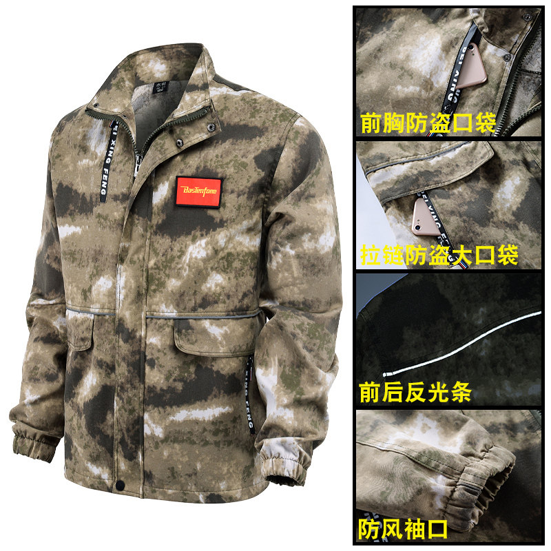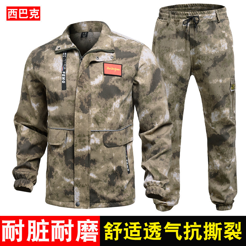 Камуфляжный осенний хлопковый износостойкий летний тонкий комплект для работы, рабочая одежда