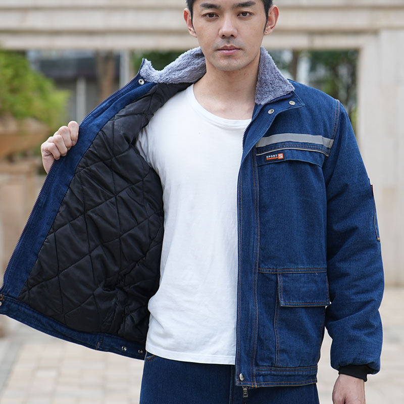 Демисезонные джинсы с начесом для работы, хлопковая куртка, износостойкий демисезонный пуховик, рабочая одежда