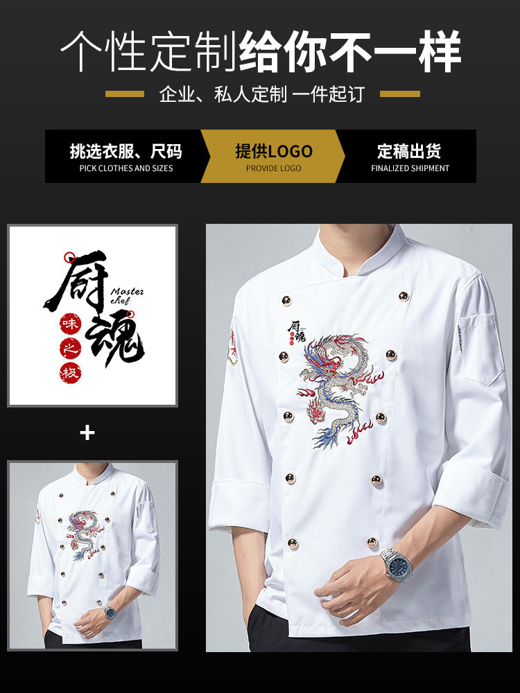 Вышитый вышитый повар для вышивки для мужчин для мужчин с длинными рукавами настройка отеля для проведения китайского ресторана Chef Kitchen Long Clothing