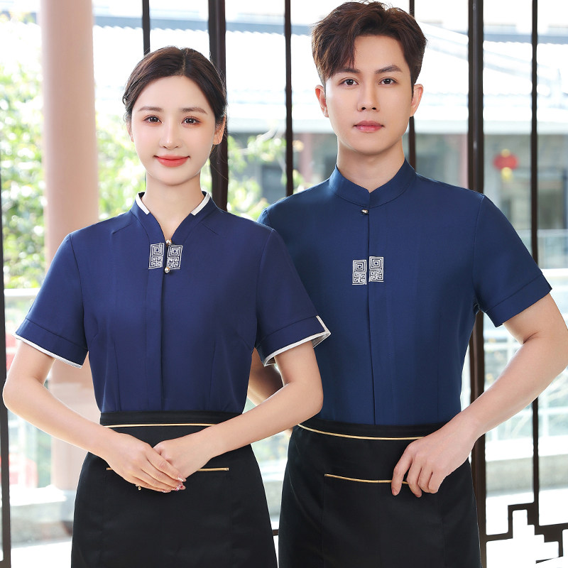 Летний комплект для отеля для работы, короткий рукав, китайский стиль
