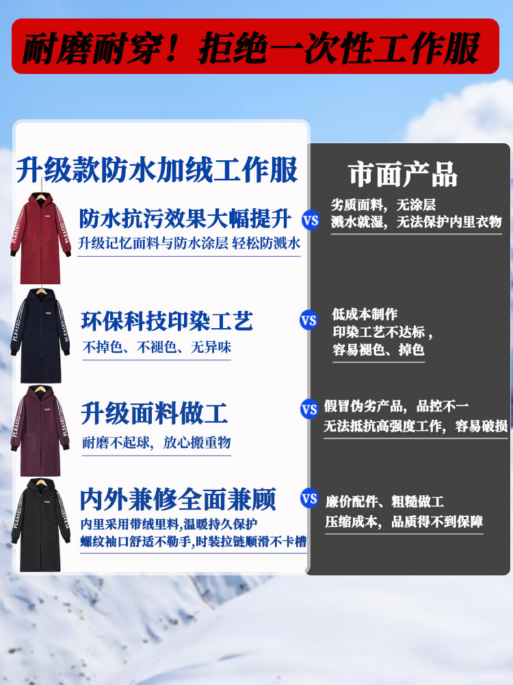 Длинный водонепроницаемый нагрудник для работы, износостойкий лонгслив с капюшоном