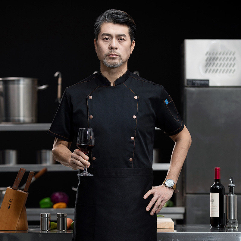Шеф -повара рабочей одежды летом, высокий шеф -повар с коротки