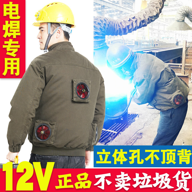 Утолщенная сварная рабочая одежда из чистого хлопка с трехмерными отверстиями, тремя вентиляторами, кондиционированием воздуха, устойчивостью к тепловому удару, термостойкостью, охраной труда и охлаждением.