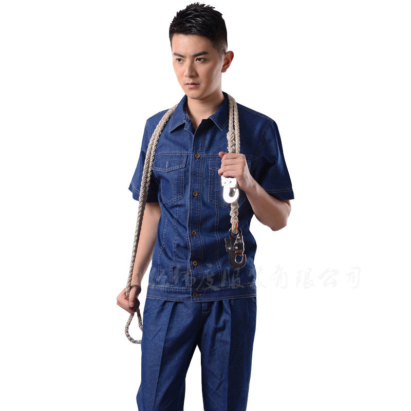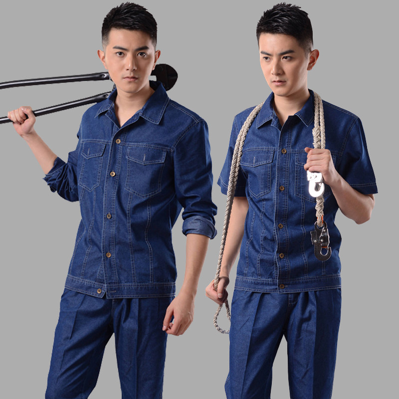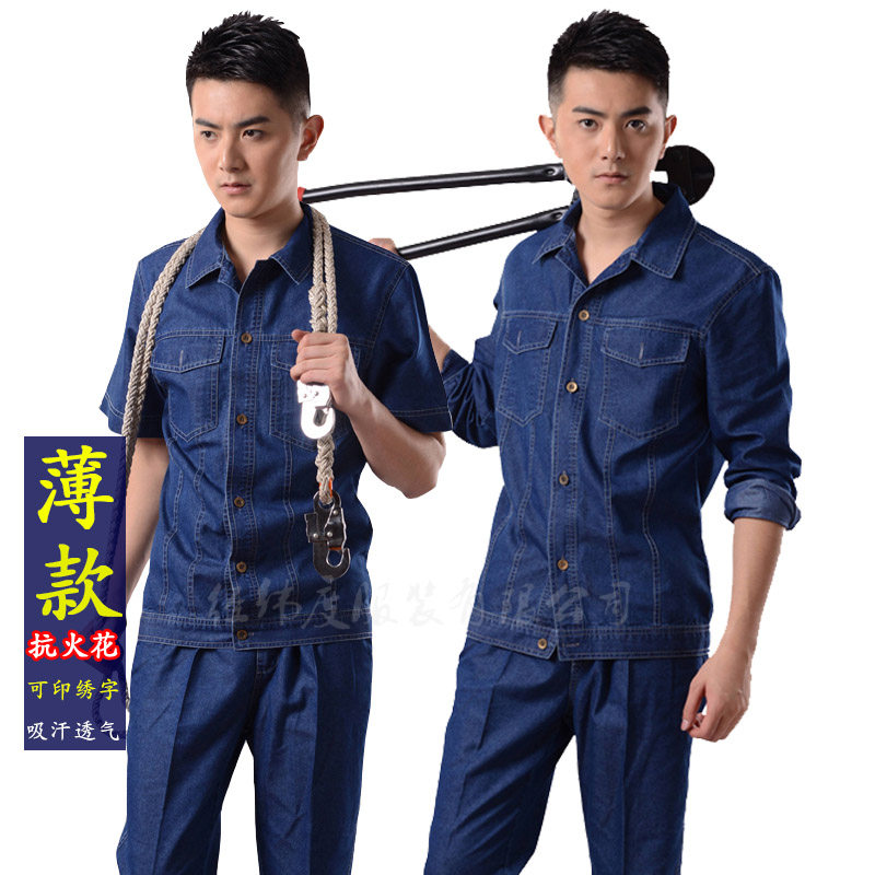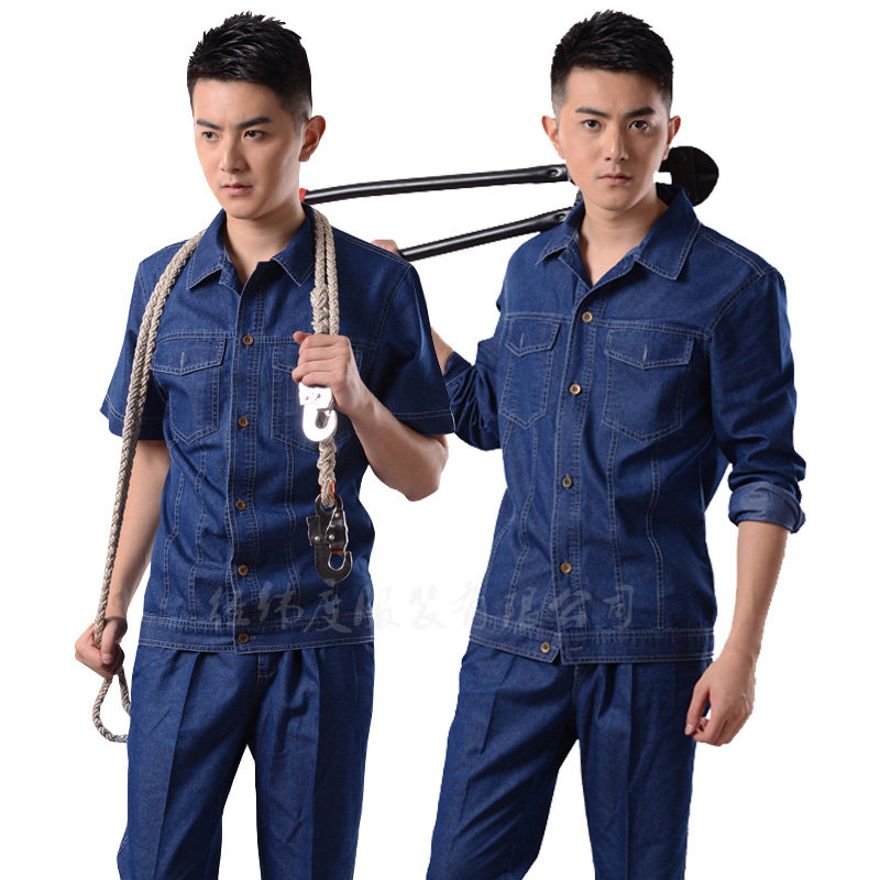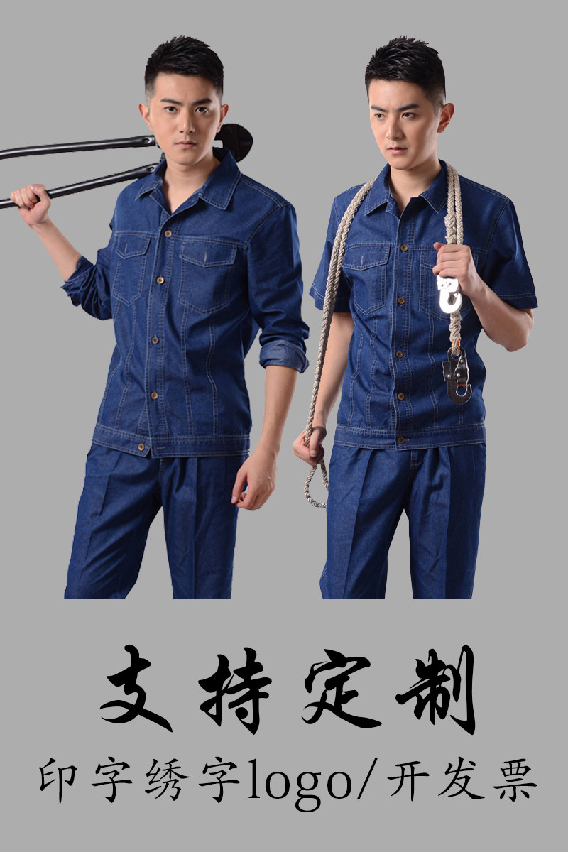 Тонкая джинсовая трудовая одежда для рабочей одежды для мужчин для мужской спортивной одежды для летних и коротких рукавов может быть напечатана и вышита логотип