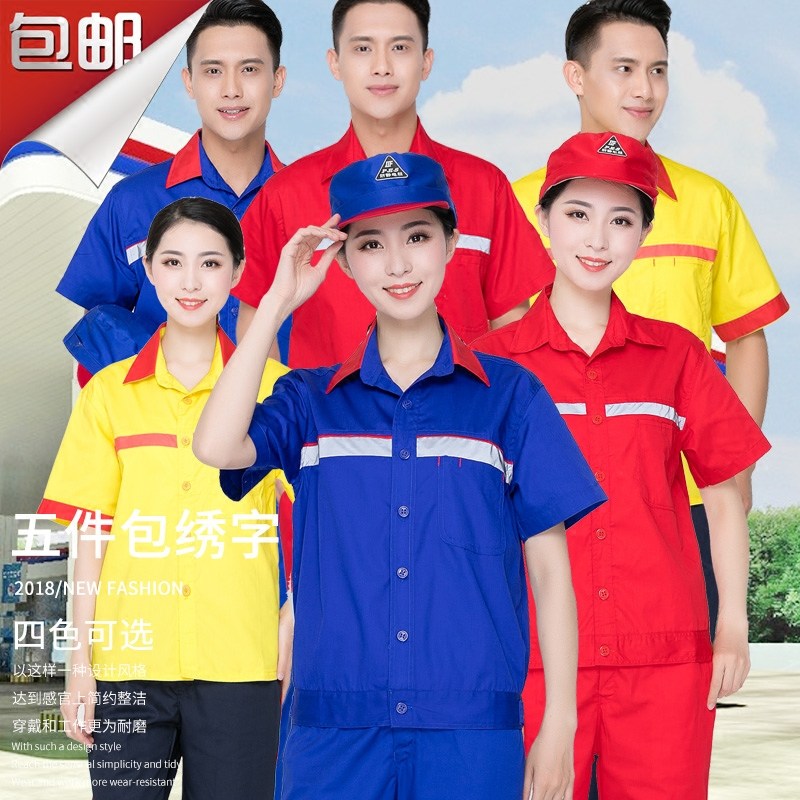 Летняя заправочная станция. Одежда Антистатическая рабочая одежда Половина рукава Химическая нефтехимическая нефтехимическая нефтяная заправка Рабочая одежда