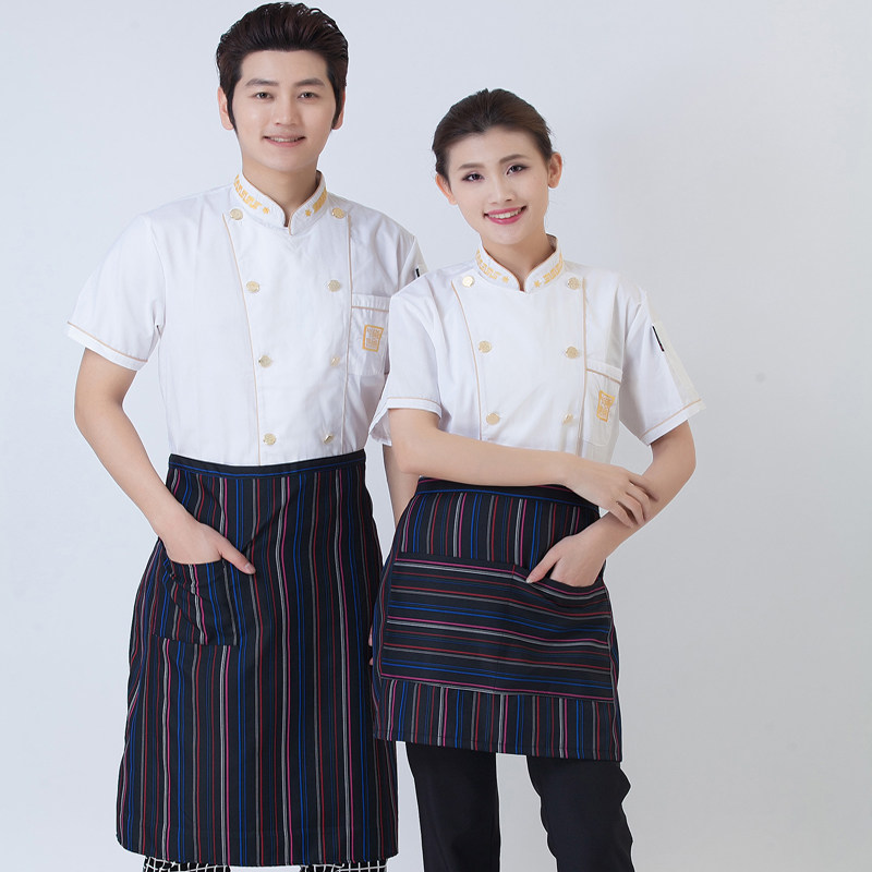 Шеф-повара Рабочая одежда с короткими рукавами мужски и женская кухня отеля можно вышиту и напечатанное на заказ логотип Pure Cotton Hetchable Work Old
