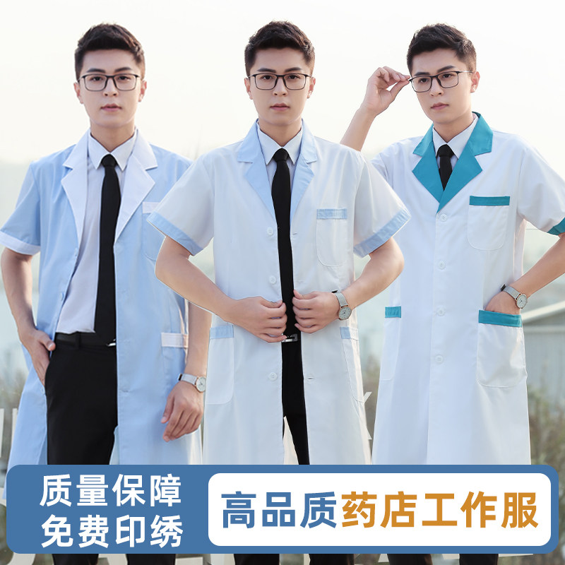 Белый халат, униформа врача, комбинезон, короткий рукав