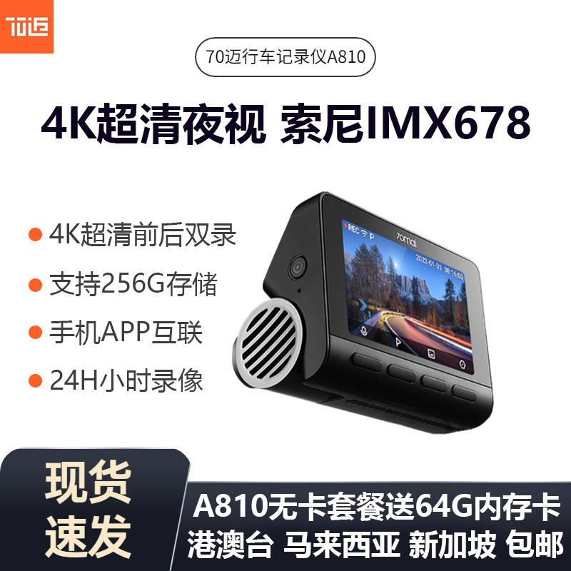 70mai Dash CAM A810 Ultra 4K встроенный GPS HD Dual Record Drycder