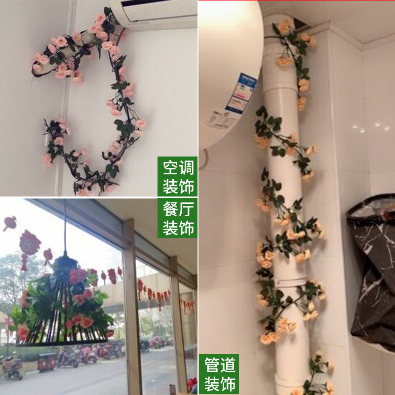 Полное описаниеСимуляция розовая фальшивая виноградная лоза Пластическая виноградная лоза, обернутая вокруг воздушных кондиционеров в гостиной, чтобы покрыть декоративные виноградные зеленые растения