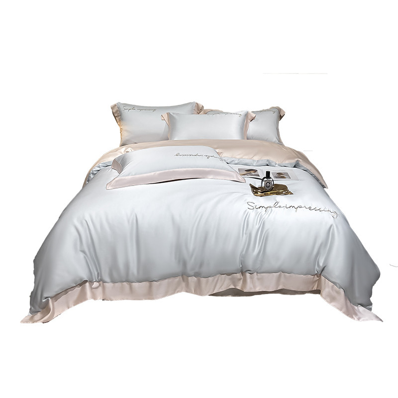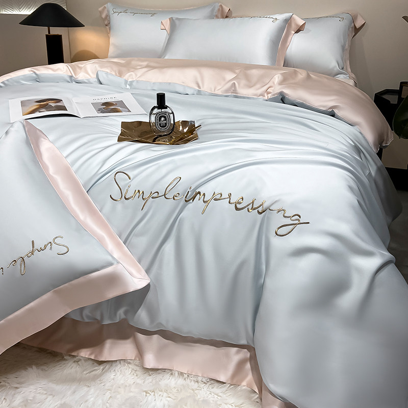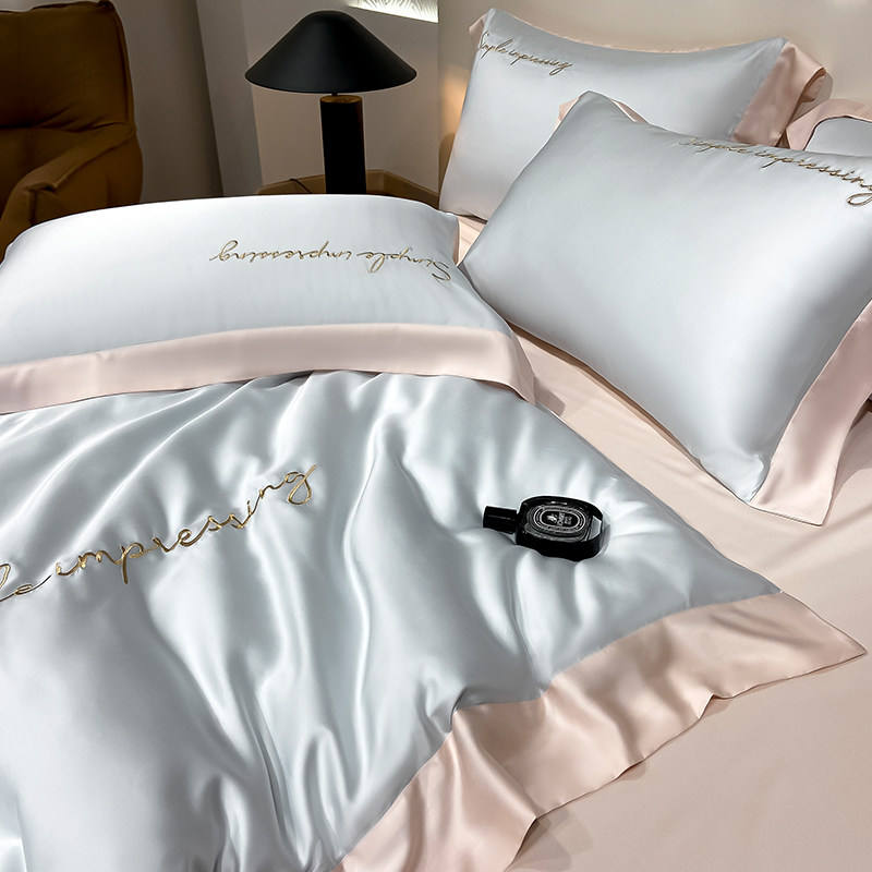 Шелковистый комплект, шелковая простыня, пододеяльник, покрывало, легкий роскошный стиль, изысканный стиль, 4 предмета