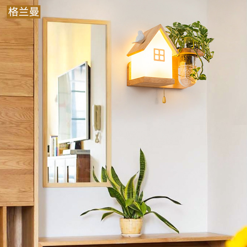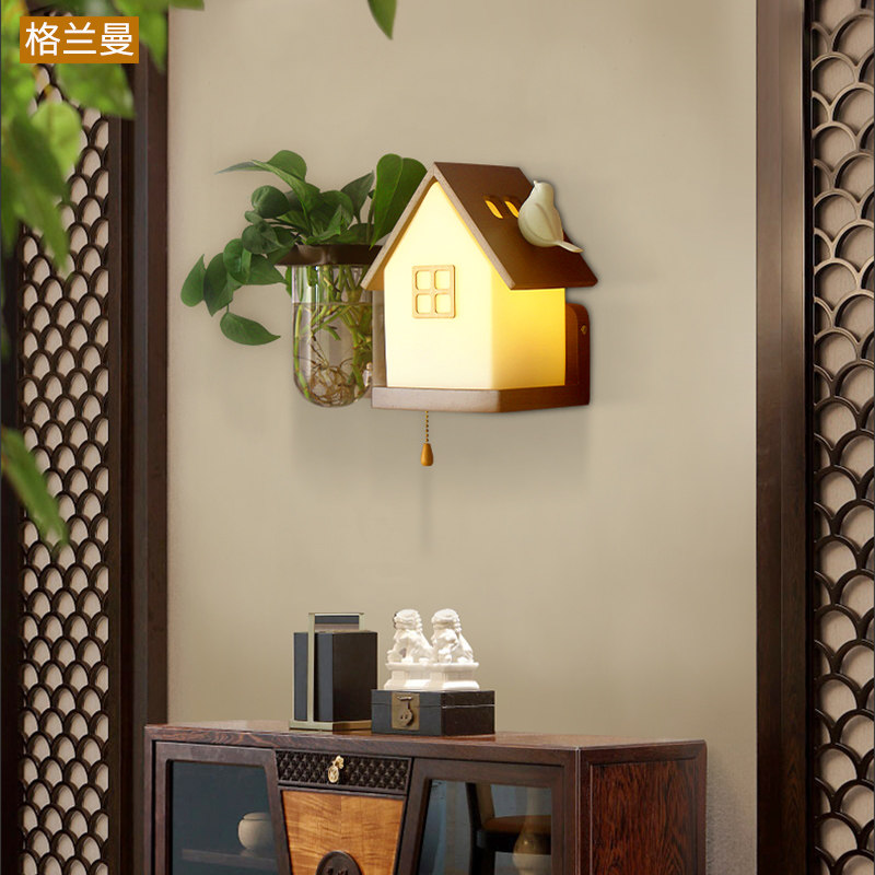 Переключатель со шнуром из натурального дерева для коридора, прикроватный креативный фонарь для беседки для кровати, бра, китайский стиль