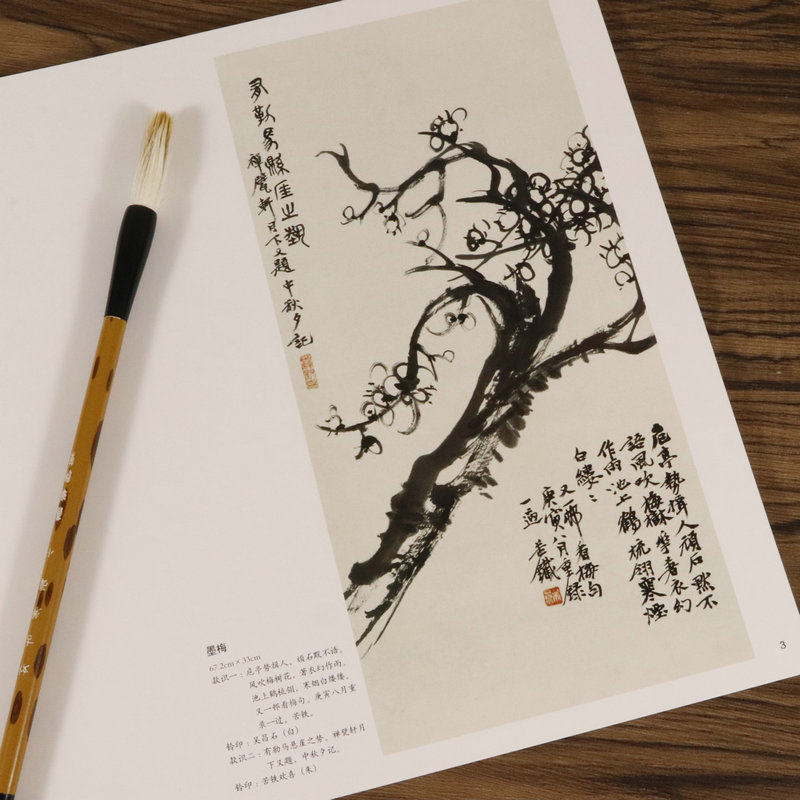 Подлинная 3 Книга 49 Бесплатная доставка Wu Changshuo Free Hand Hand Rawing Работа на странице пейзажа карта китайская живопись Мастерская классическая серия художественных произведений.