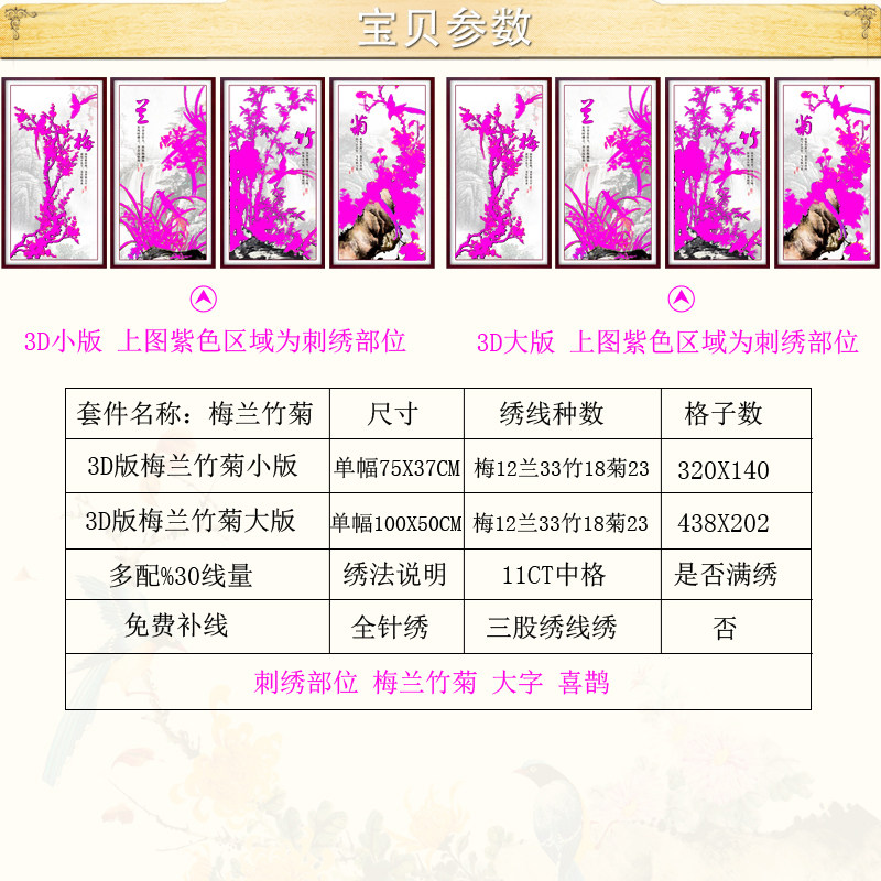 2020 Древний ветровый перекрестный вышитый Мейлан Бамбук Хризантема 2021 Вертикальная 3D простая вышивка Новая гостиная Китай Винтер и атмосферная вышивка