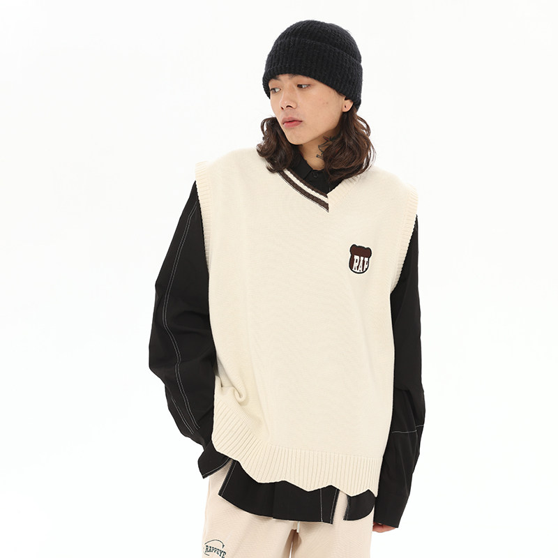 Трикотажный жилет для влюбленных, демисезонный свитер без рукавов, с медвежатами, оверсайз