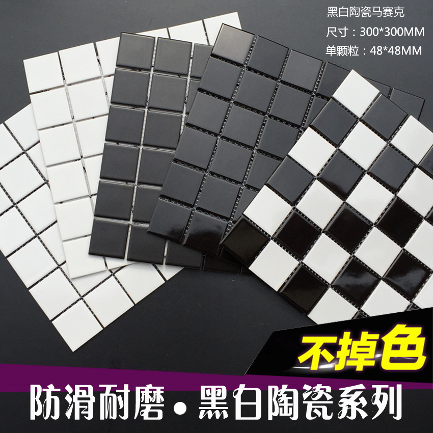 Скандинавская керамическая мозаика 48 мм, керамическая плитка для кухни, черно-белая глазурованная клетчатая плитка, противоскользящая плитка для пола и стен в ванной комнате