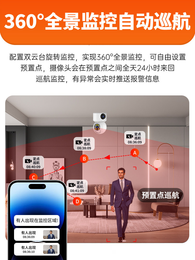 Беспроводная камера видеонаблюдения, мобильный телефон, радио-няня для домашнего использования, 360 градусов