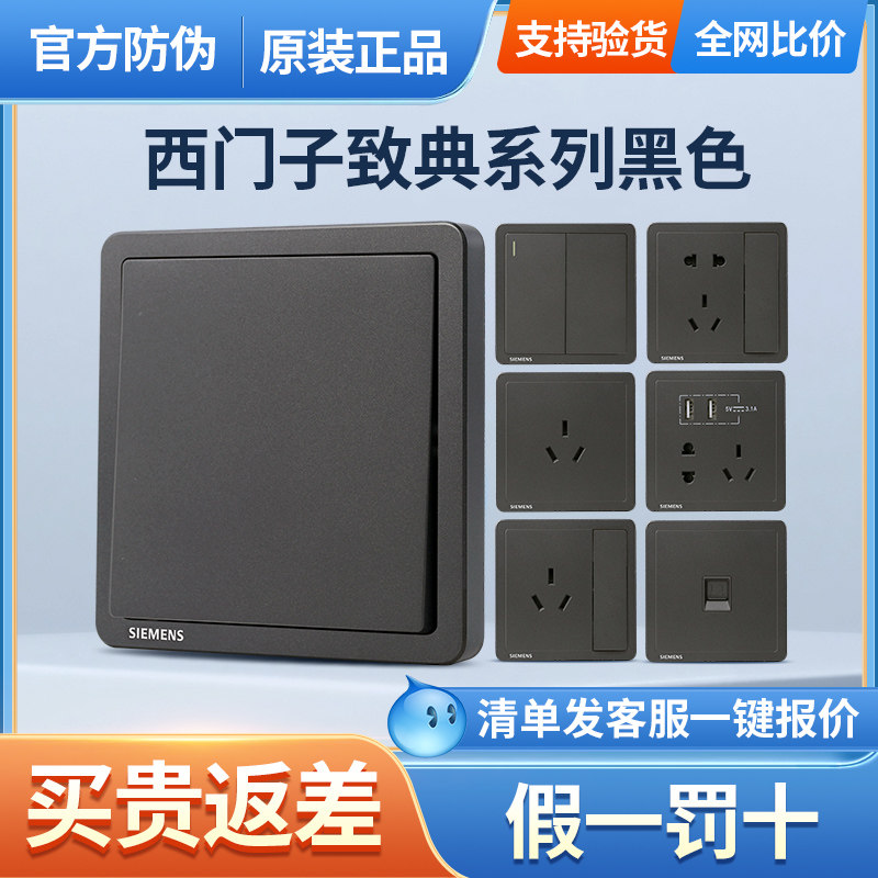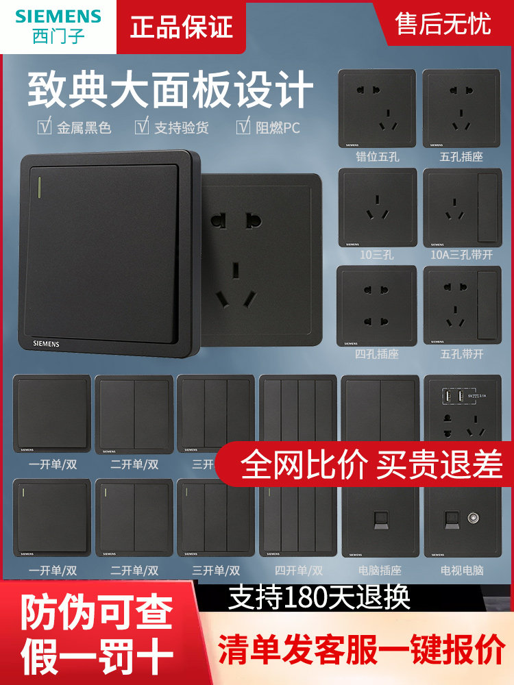 Siemens Switch разъем к классическому металлическому черному | серого 5, пяти -отверстия, один два переключателя однодневное двойное управление домашней настенной панелью