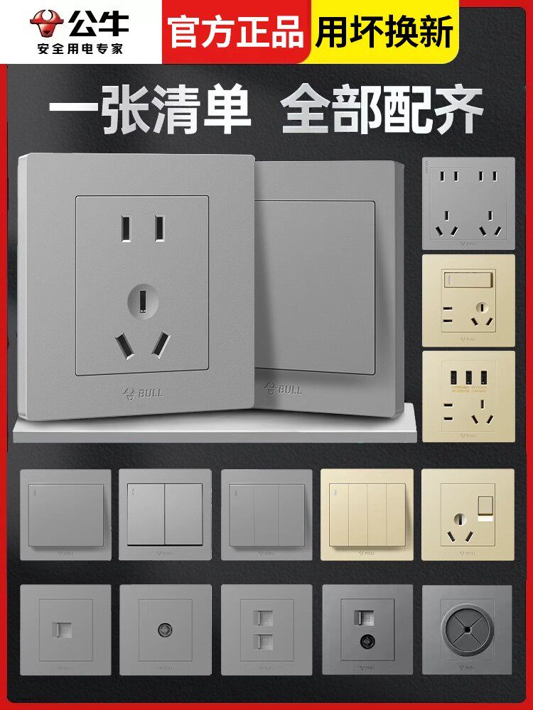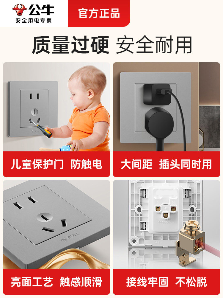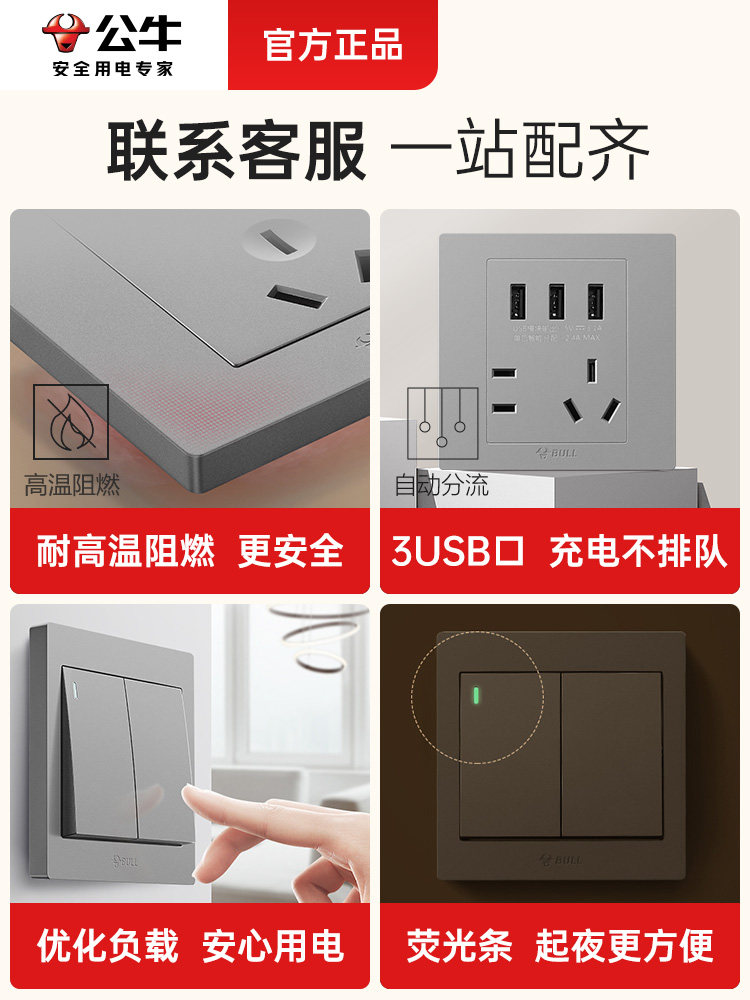 Переключательная панель -выключателя темная установка Пять -яма -гнездо дом 16a с USB стеной панель пористого золота
