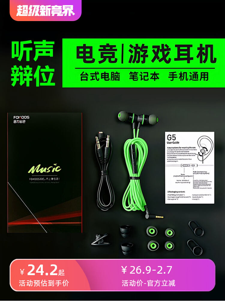Fokoos G5 Black Shark 5 Universal Game Headset, подключенная к курице, слушая звуковые дебаты на рабочем компьютере E -Sports