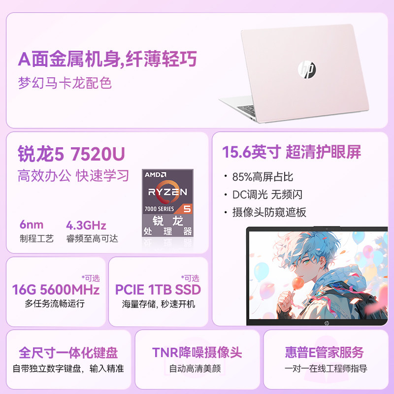 HP, легкий и тонкий ноутбук, цвет, делается под заказ, 15, процессор AMD ryzen, официальный флагманский магазин