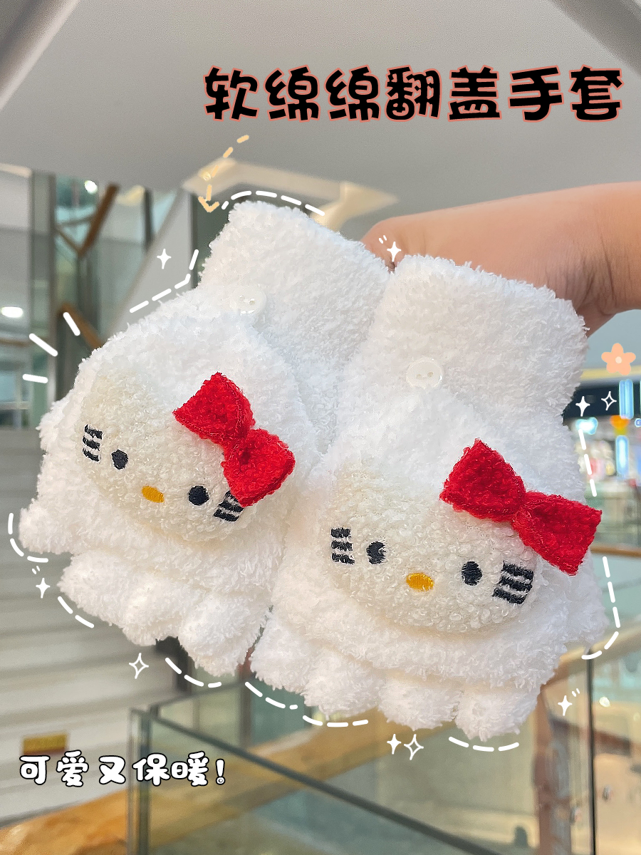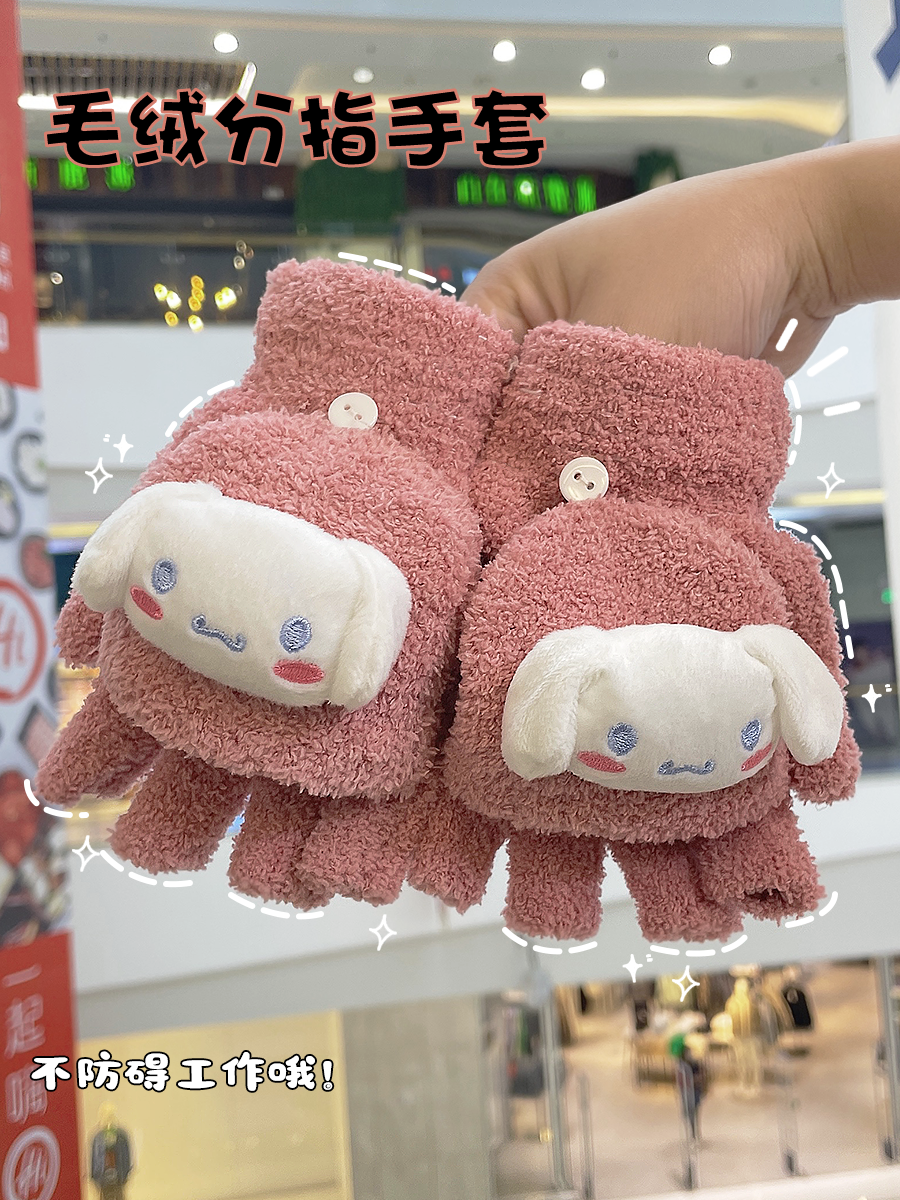 Мультяшные бархатные перчатки для взрослых, бархатный флисовый удерживающий тепло комплект для школьников, без пальцев