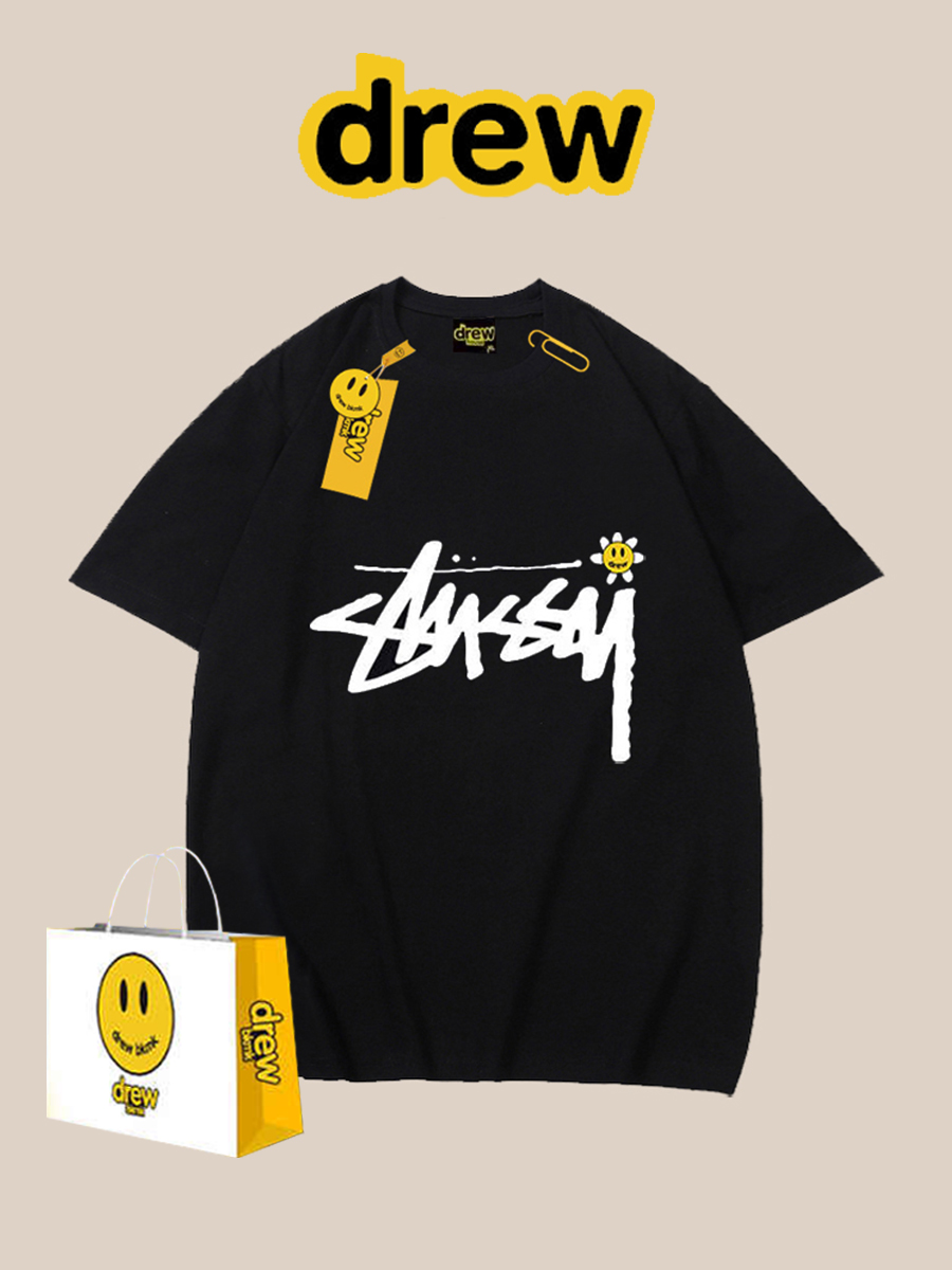 Футболка с короткими рукавами Draw, мужская и женская модная брендовая летняя свободная пара Джастина Бибера, дом Бибера с половиной рукава в том же стиле
