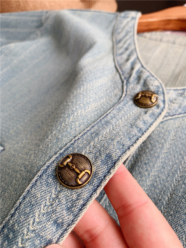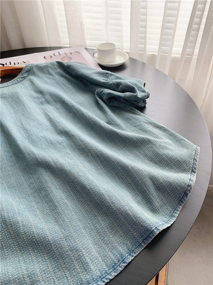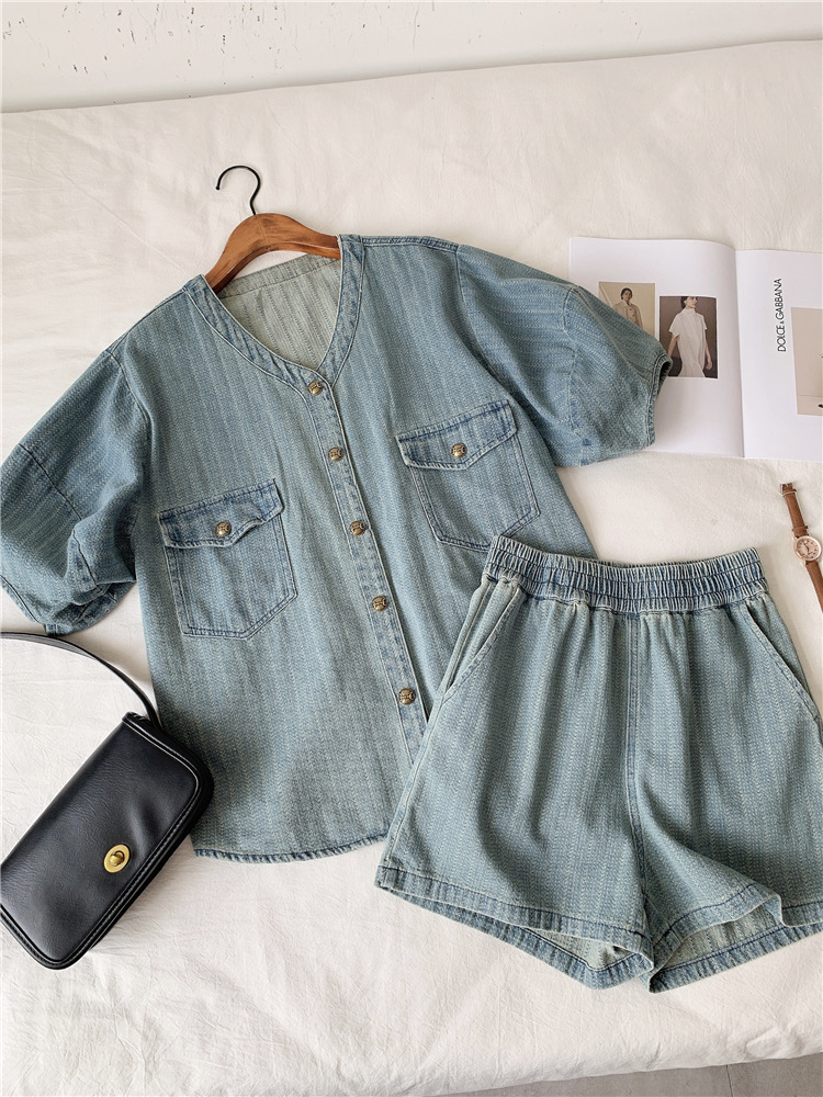 Ретро джинсовый комплект, французский стиль, V-образный вырез, свободный крой, короткий рукав