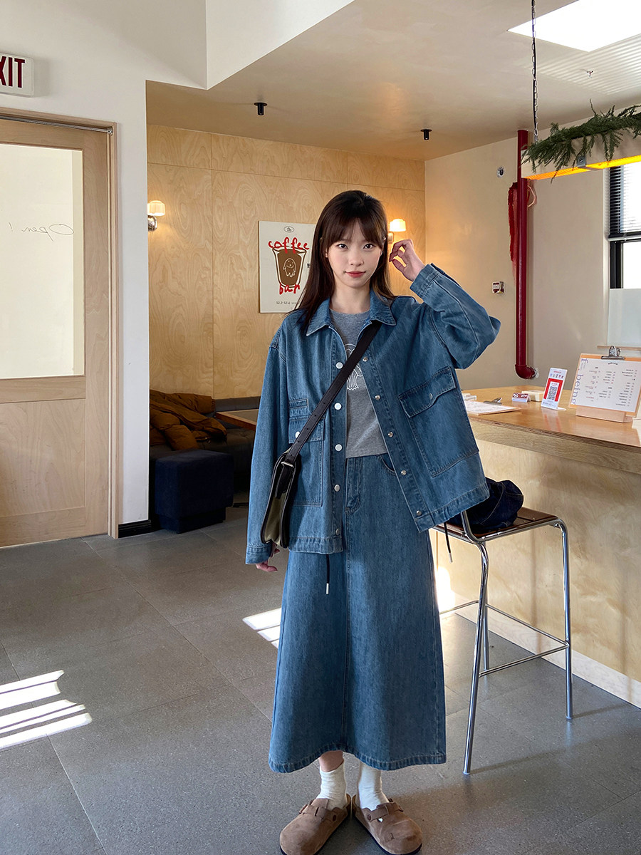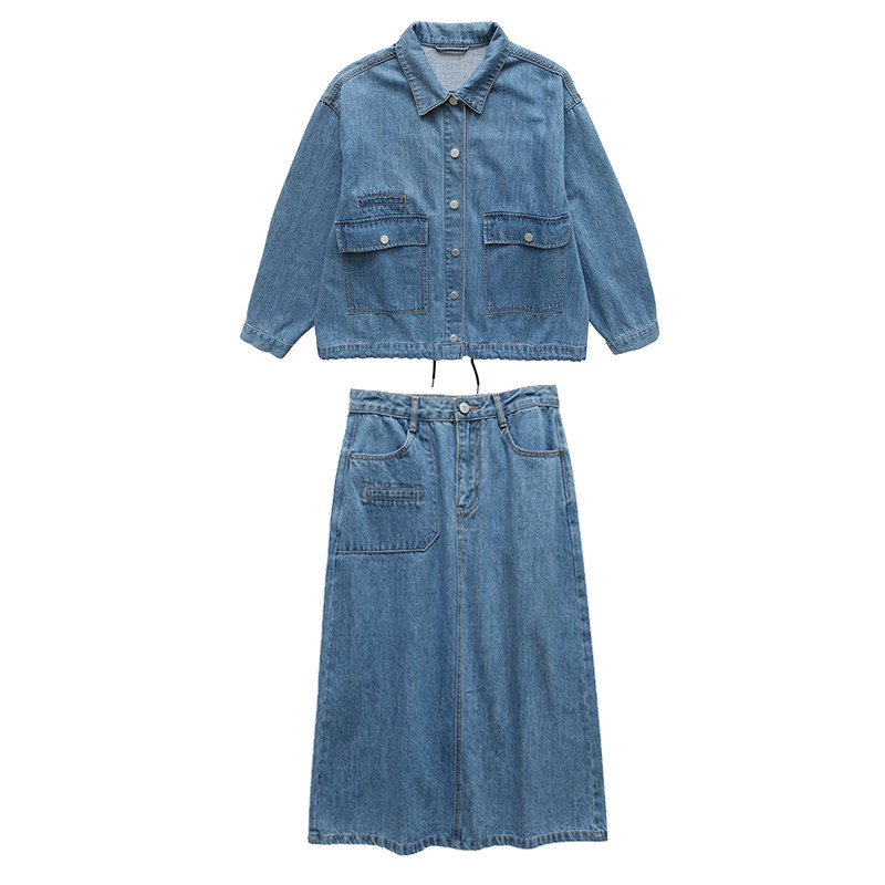 Весенний джинсовый комплект, асимметричная куртка, юбка, А-силуэт