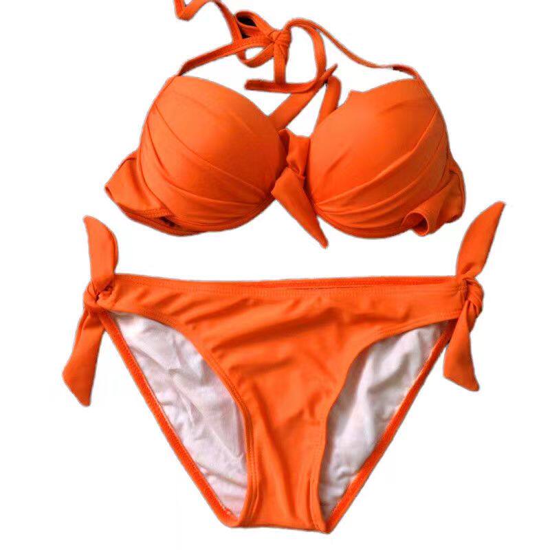 Розовый купальник, раздельный сексуальный бюстгальтер пуш-ап, изысканный стиль