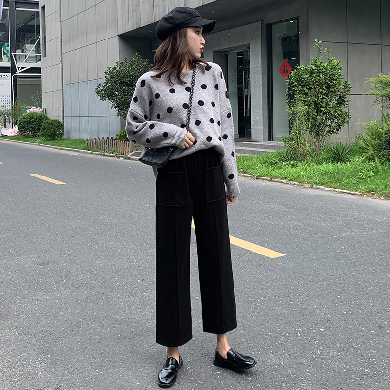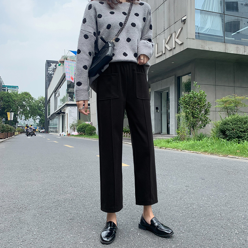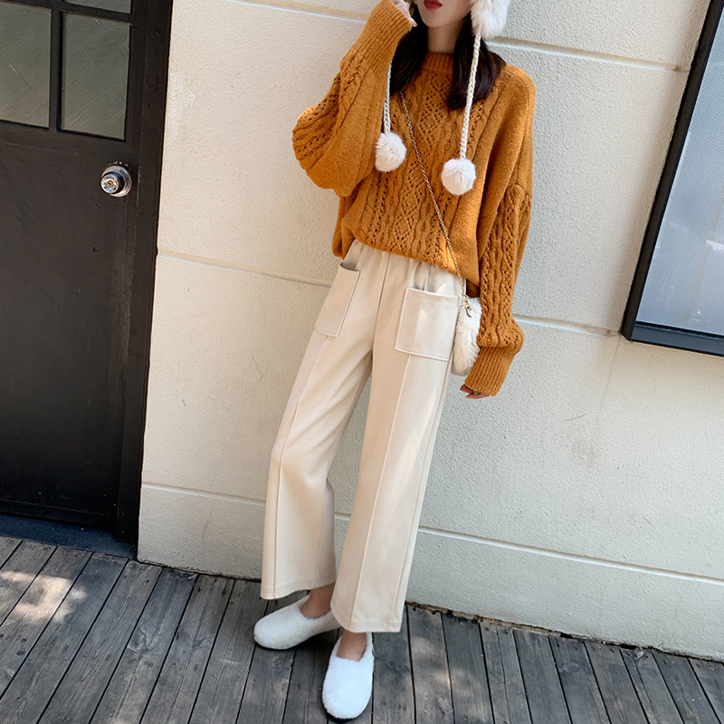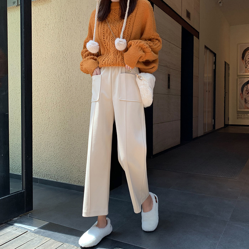 Шерстяные демисезонные штаны, 2019, высокая талия, оверсайз, увеличенная толщина, свободный прямой крой