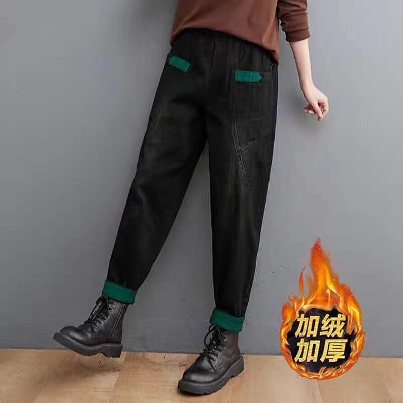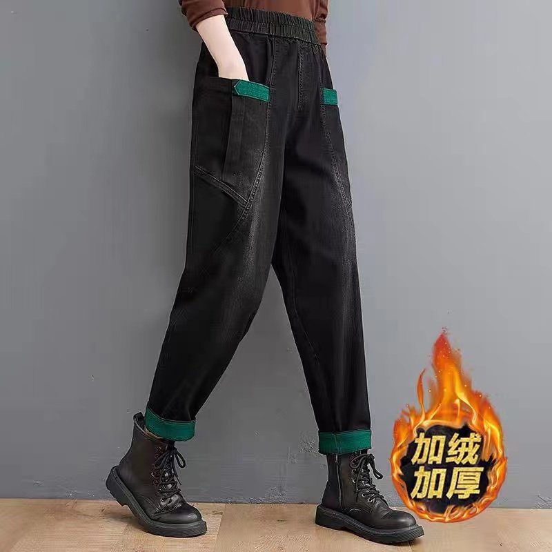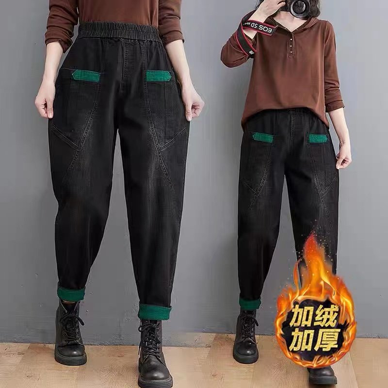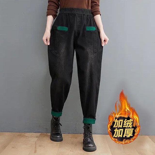 Джинсы, осенние ретро штаны, оверсайз, большой размер, эластичная талия
