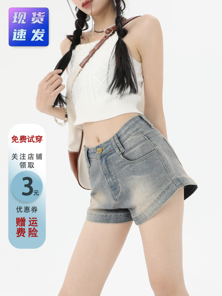 Ретро джинсовые шорты, летние штаны, универсальная поясная сумка, в американском стиле, высокая талия, А-силуэт