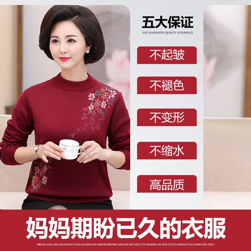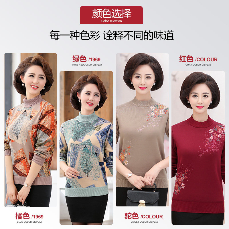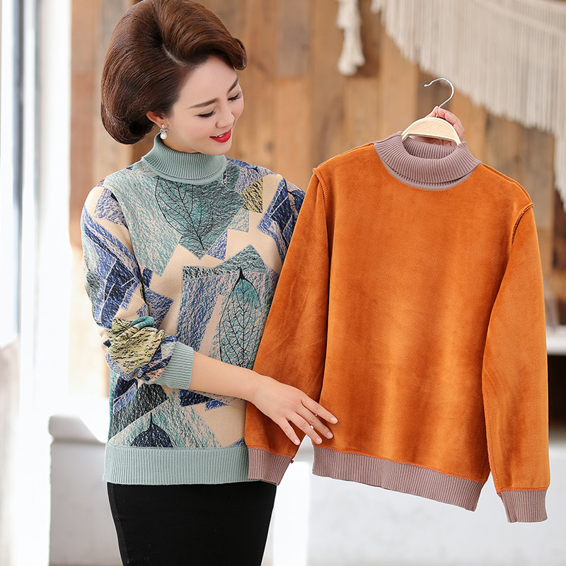 Утепленный пуховик для матери, демисезонный удерживающий тепло базовый приятный телу свитер, 50 лет, для среднего возраста