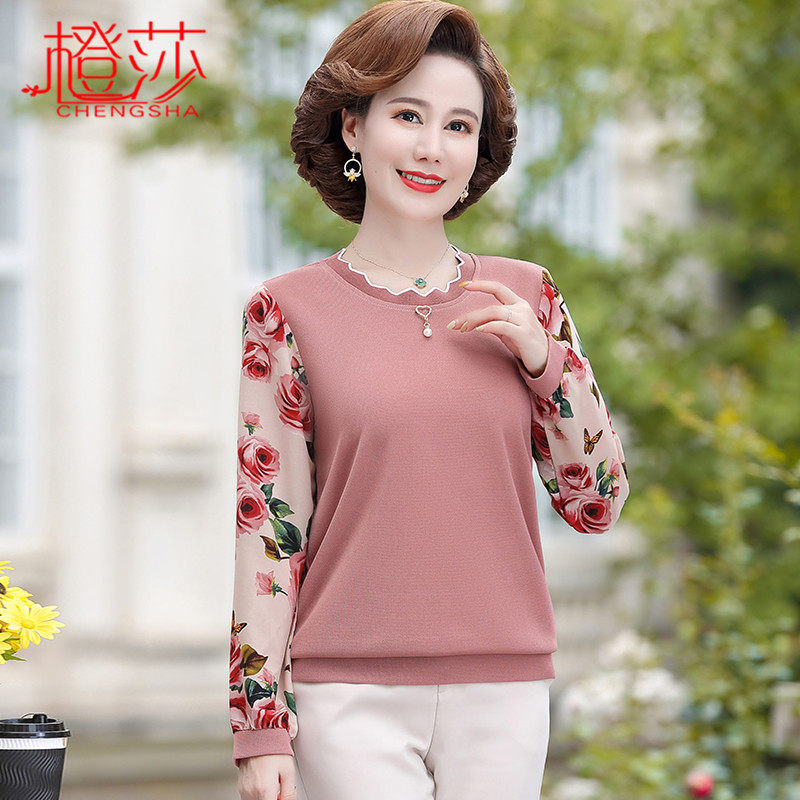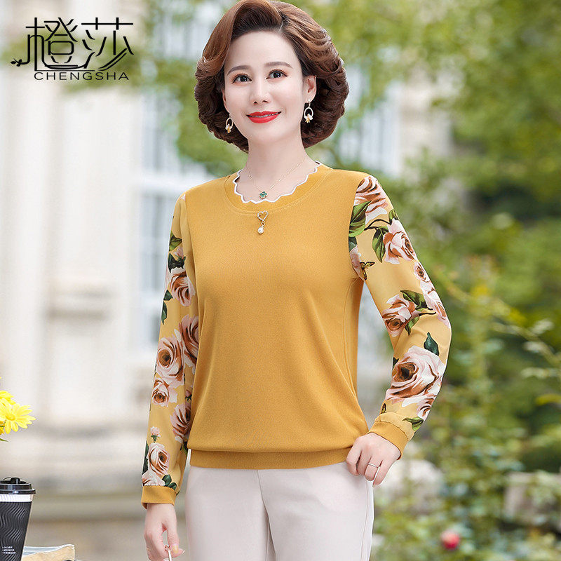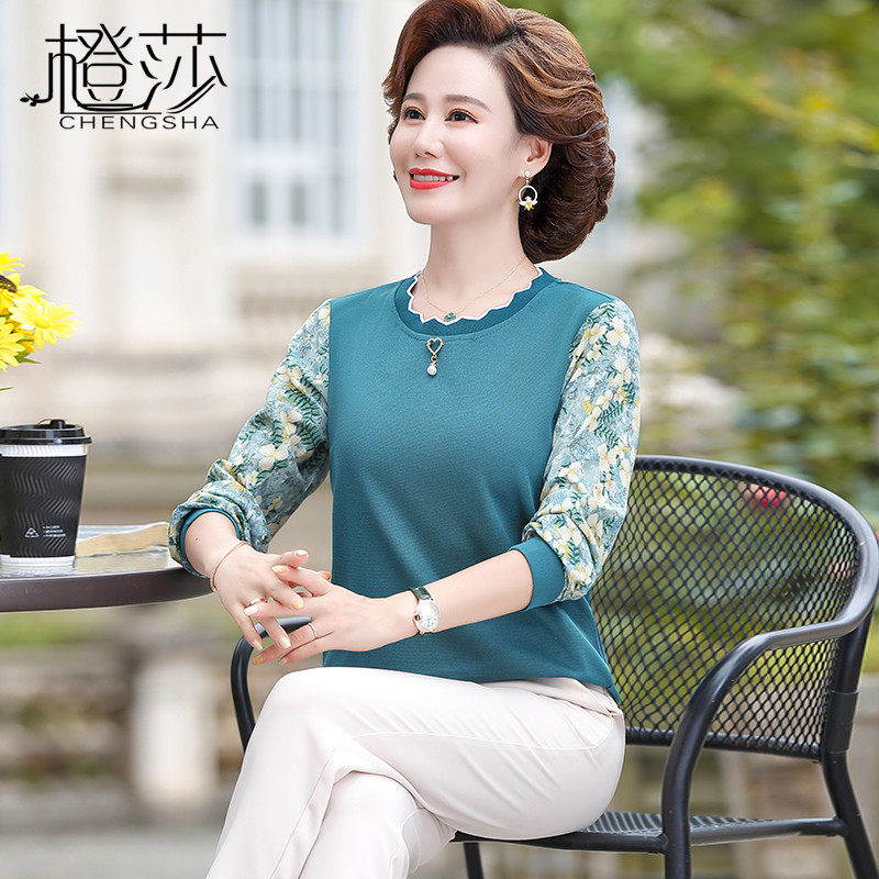 Весенний базовый приятный телу комплект для матери, осенний лонгслив для пожилых людей, коллекция 2023, в западном стиле, для среднего возраста