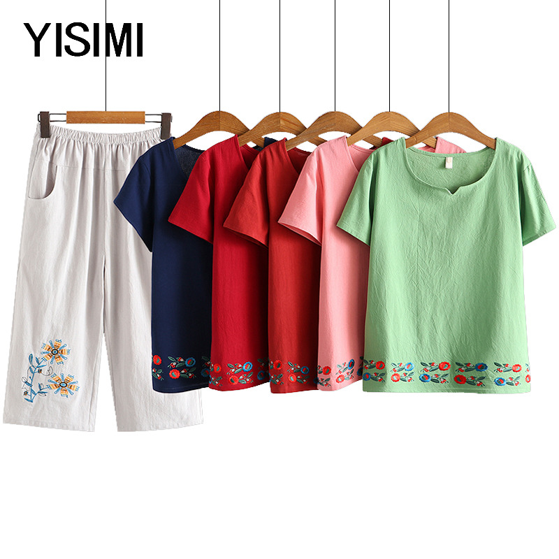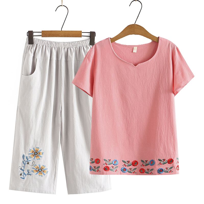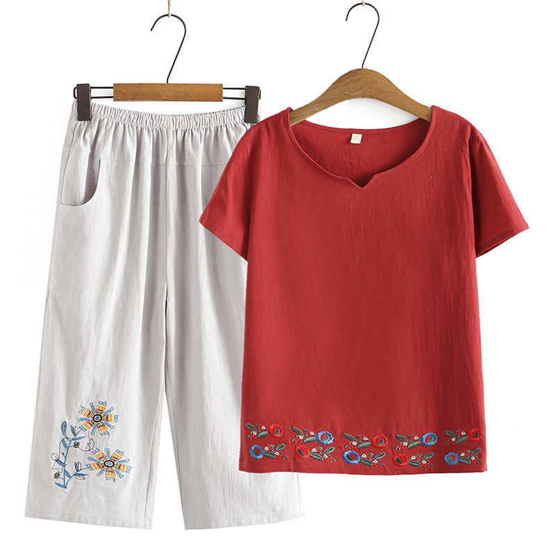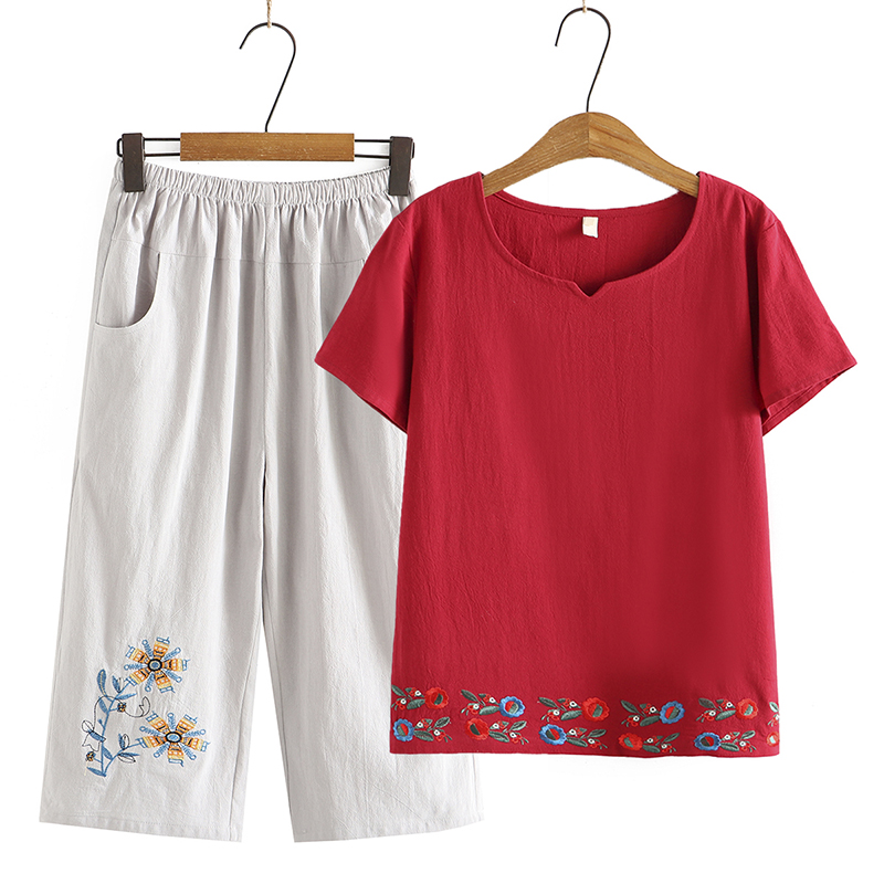 Этнический комплект для пожилых людей для матери, штаны для отдыха, для среднего возраста, большой размер, этнический стиль, 2 предмета