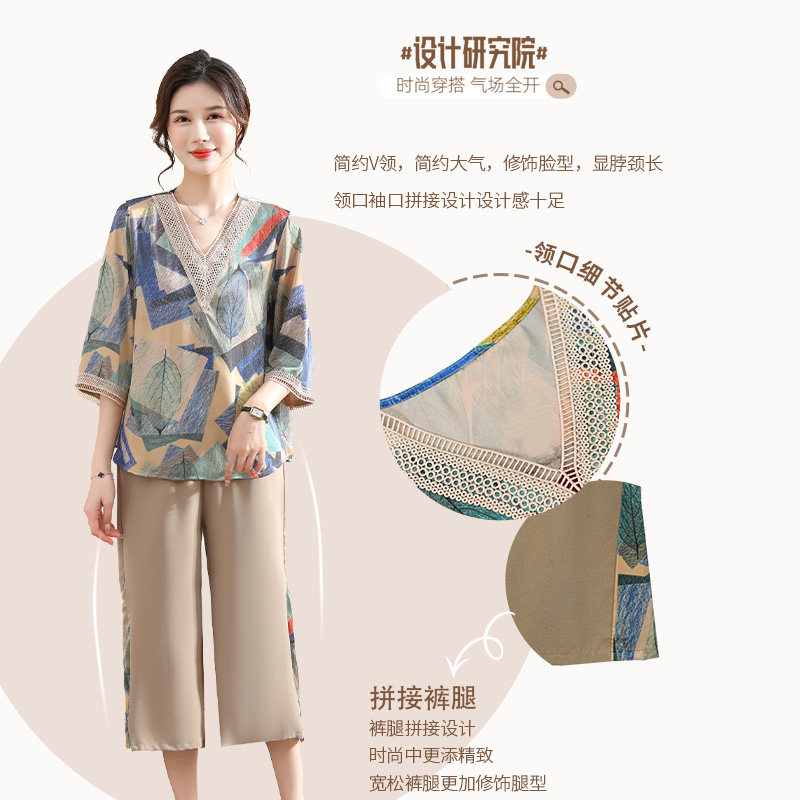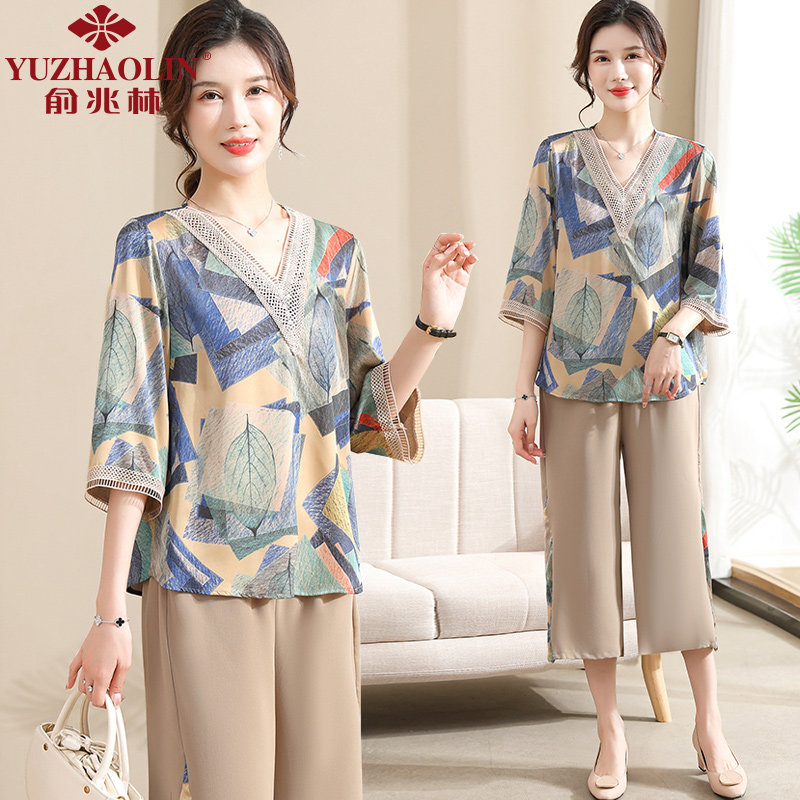 Летняя летняя одежда для матери для пожилых людей, футболка, комплект, 2023, для среднего возраста, короткий рукав, в западном стиле