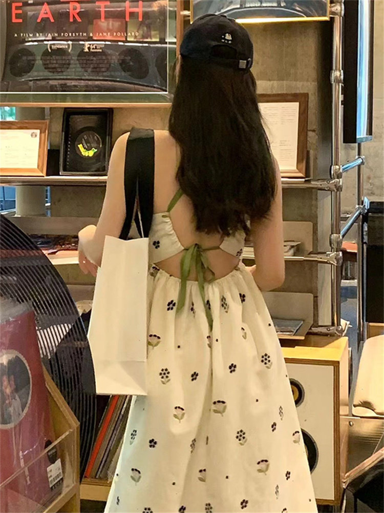 Сексуальная летняя ретро длинная юбка без рукавов, корсет, платье, французский стиль, с открытой спиной, цветочный принт
