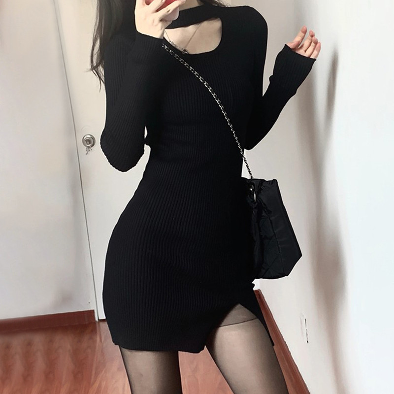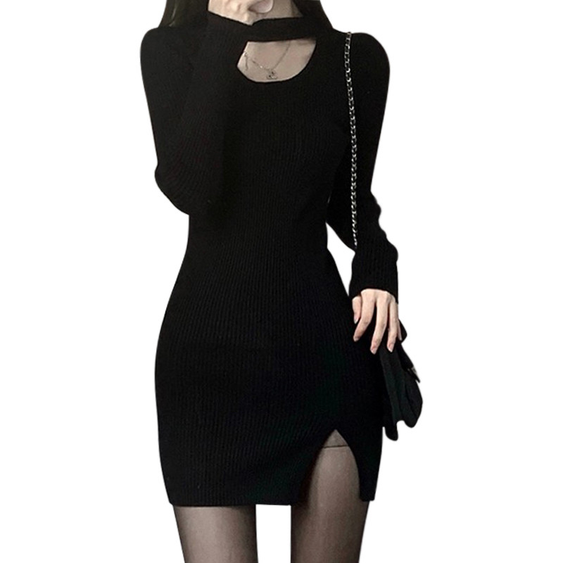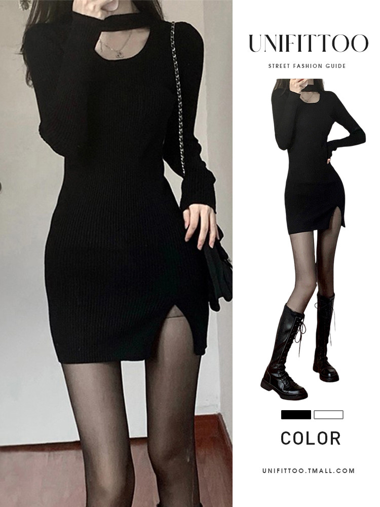 Весеннее платье, черный лонгслив, юбка, с акцентом на бедрах