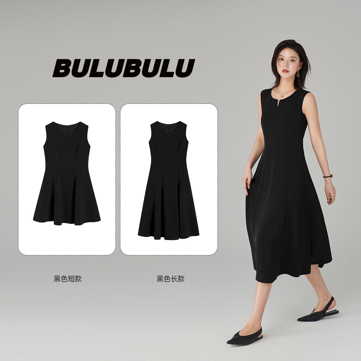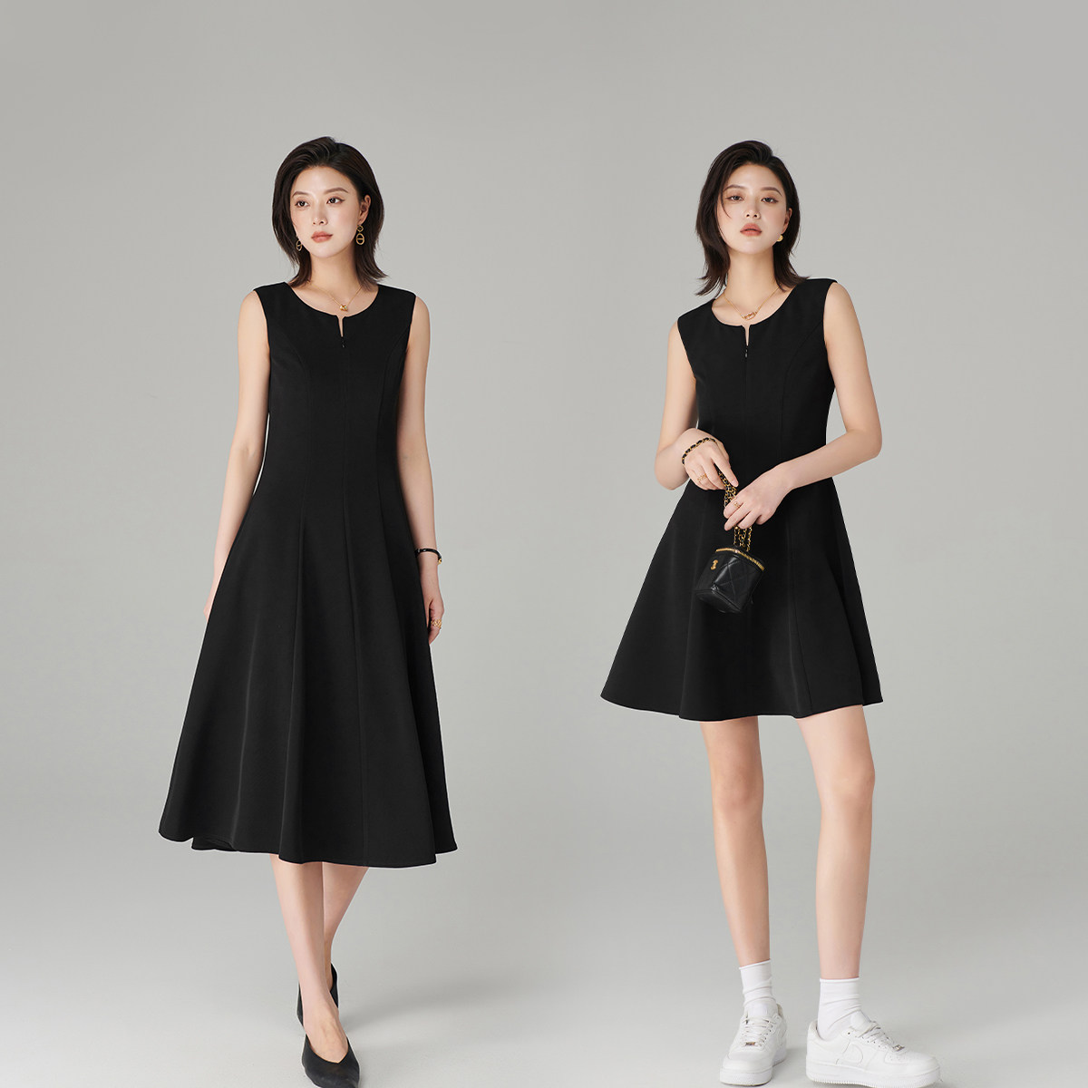 Короткое классическое платье без рукавов, круглый воротник