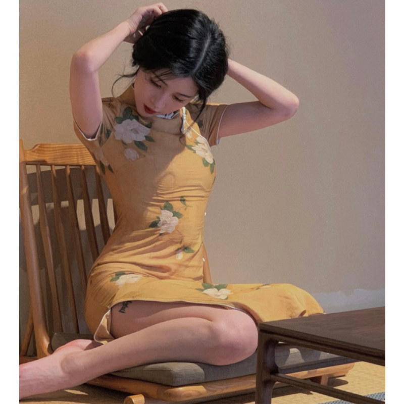 Легкое ципао, элитное платье, китайский стиль, 2025 года, светлый стиль, в цветочек