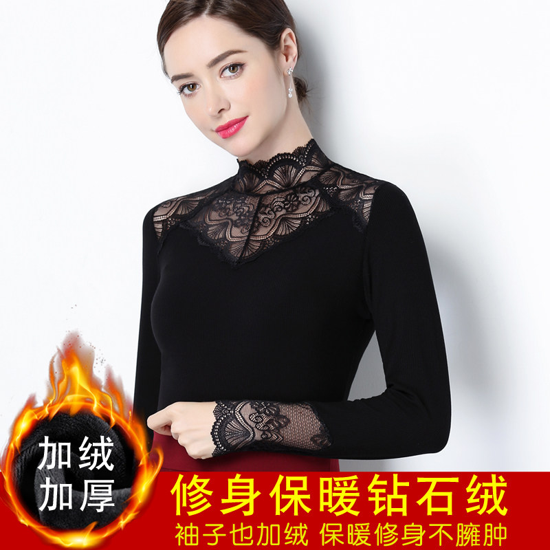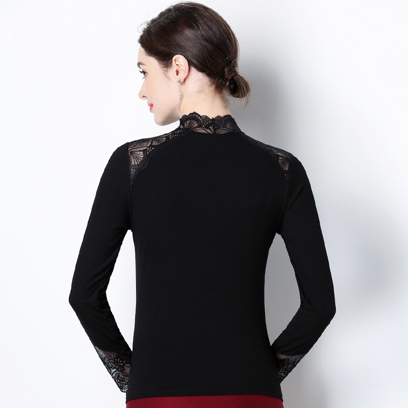 Кружевной шелковый приятный телу черный демисезонный утепленный лонгслив, облегающий крой