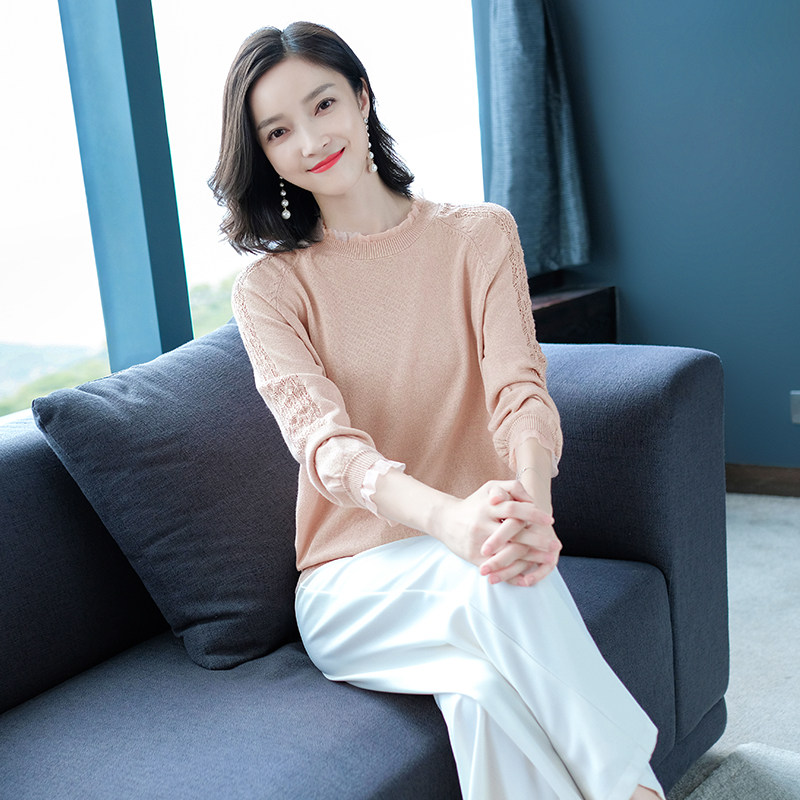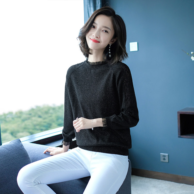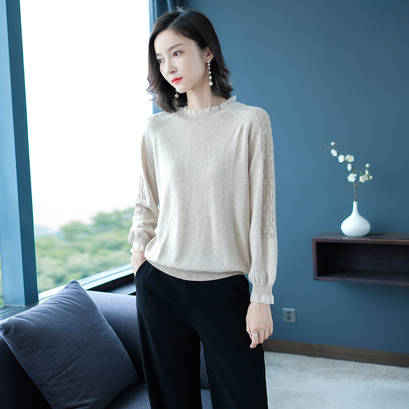 Демисезонная футболка, тонкий трикотажный кружевной шелковый приятный телу лонгслив для матери, коллекция 2022, осенняя
