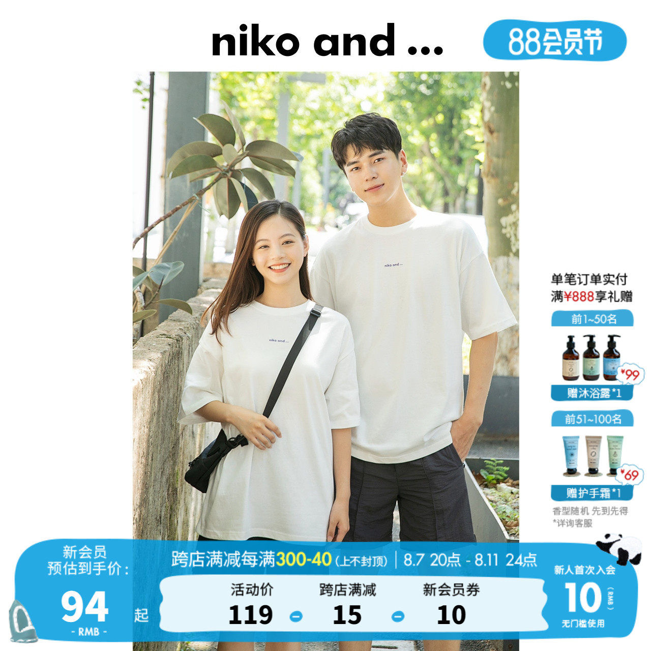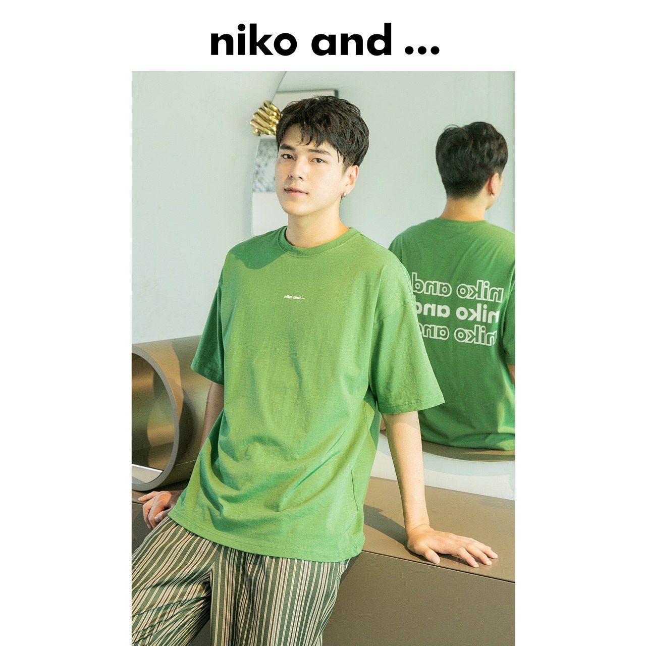 [Тот же блогер] Нико и ... Рейнбоу Т -Форбат новые негабаритные пары короткие рукава 228662