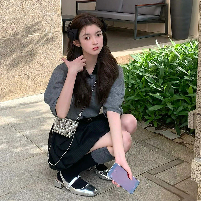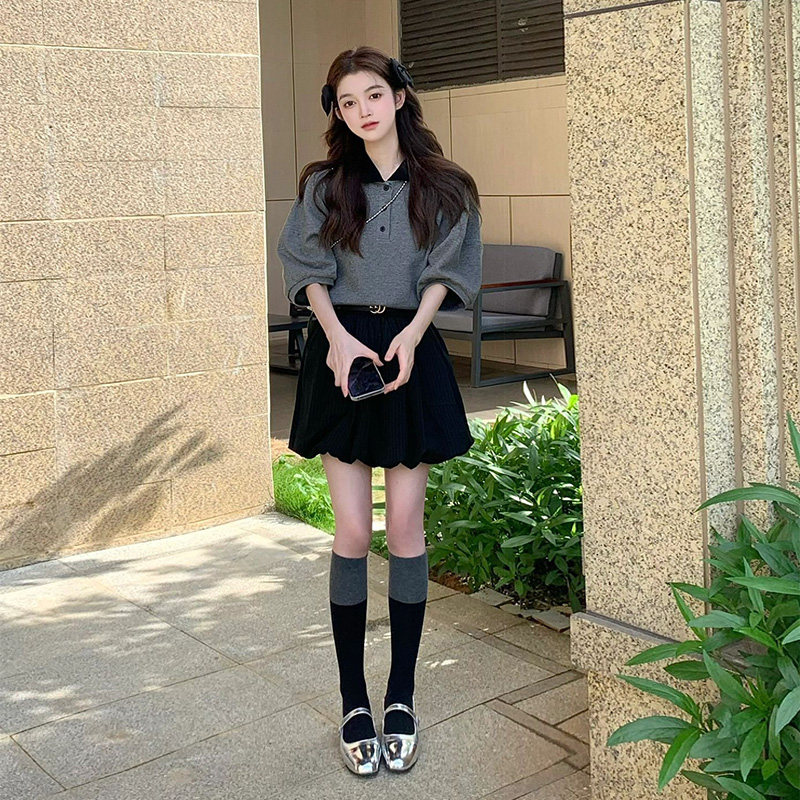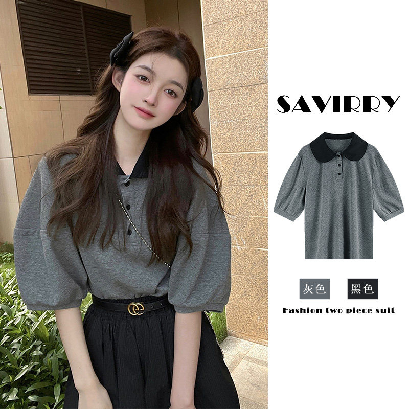 Футболка polo, летняя сексуальная футболка с коротким рукавом, рукава фонарики, подходит для подростков, французский стиль