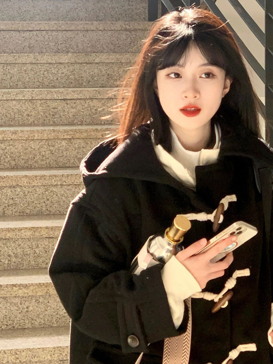 Черное шерстяное демисезонное шерстяное пальто, подходит для подростков, увеличенная толщина