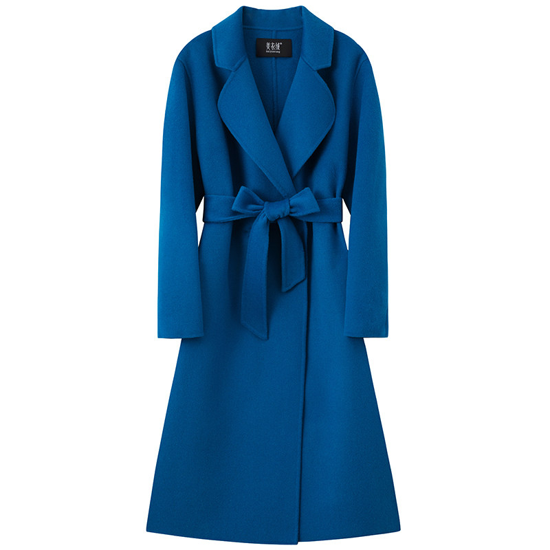 Синее двусторонное кашемировое элитное длинное шерстяное шерстяное пальто, длина макси