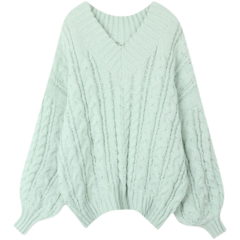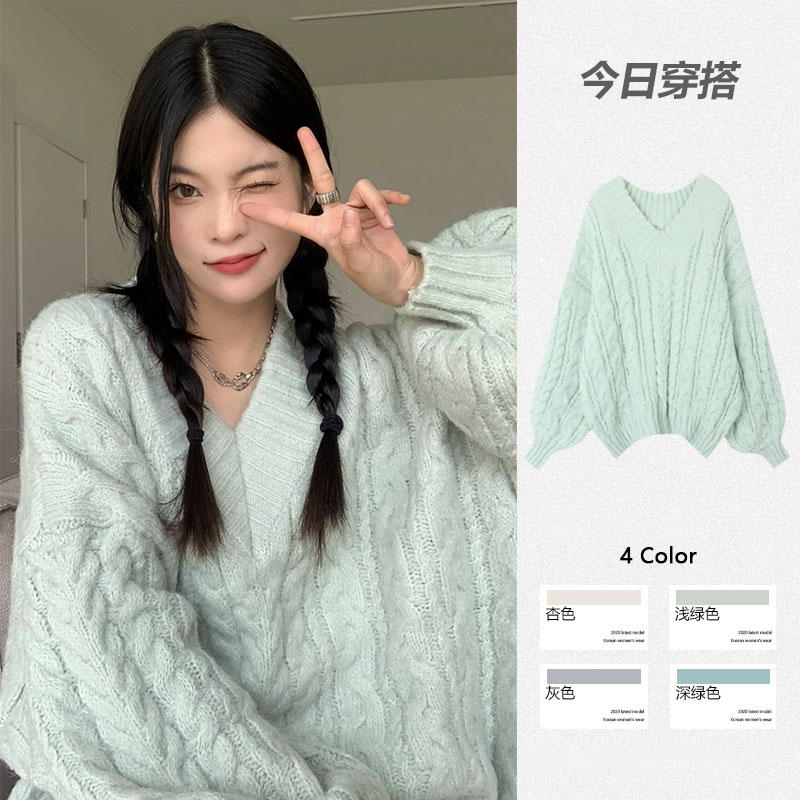 Брендовый трикотажный демисезонный зеленый свитер, оверсайз, V-образный вырез, увеличенная толщина, большой размер